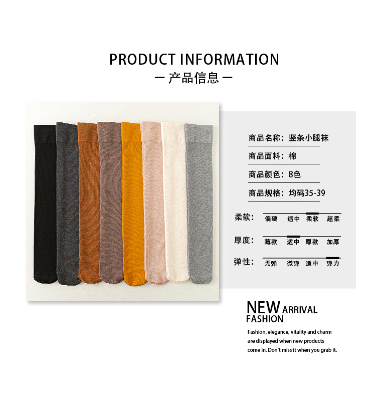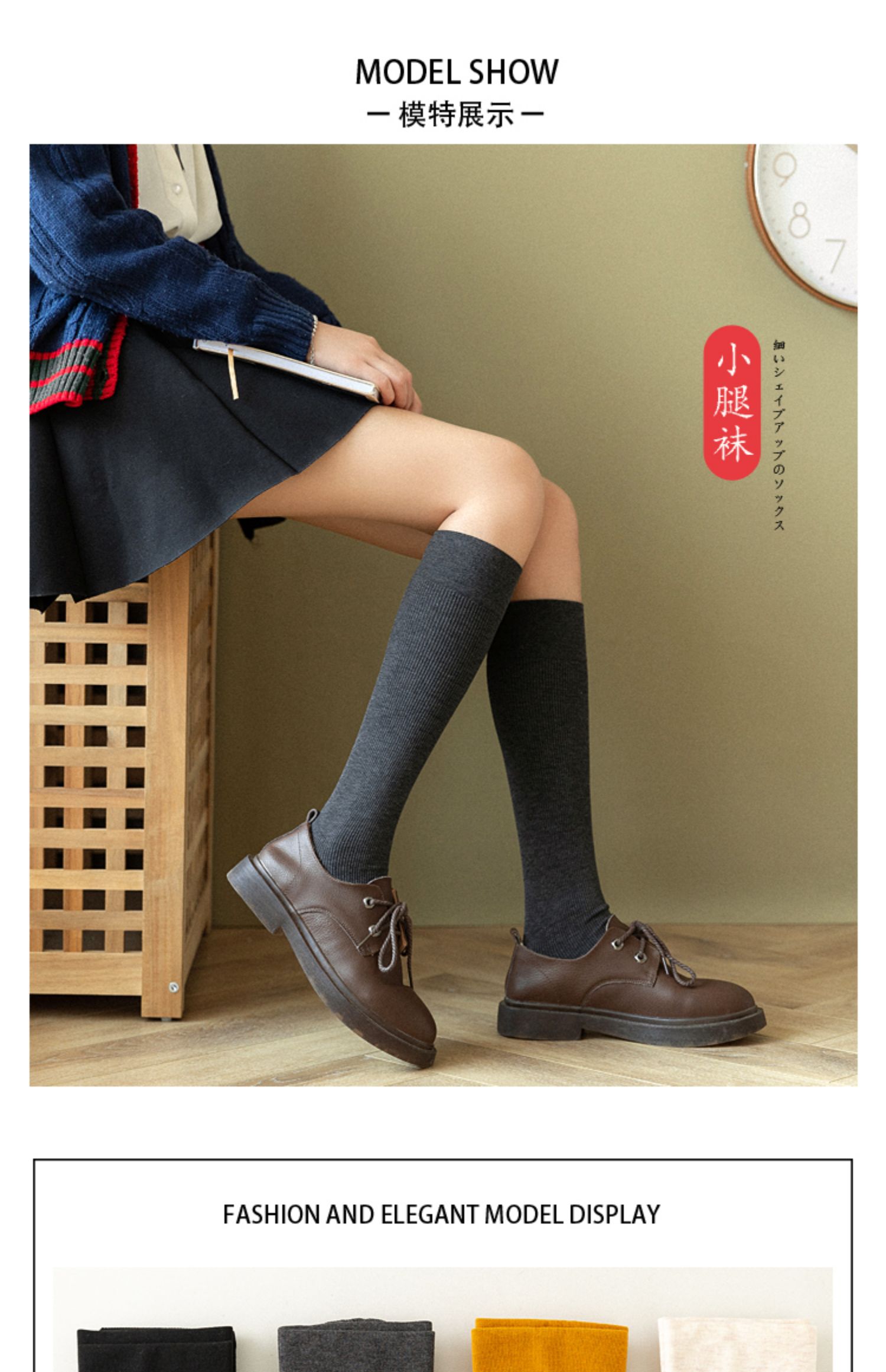 【和普通的小腿袜不同,这款是瘦腿压力袜哦!】压力小腿袜材质和工艺都是非常优秀的!袜脚底板有按摩底,袜口有竖条纹防脱纹理设计,可清纯学院风,可中性高冷风,怎么搭都是街头靓丽的风景!