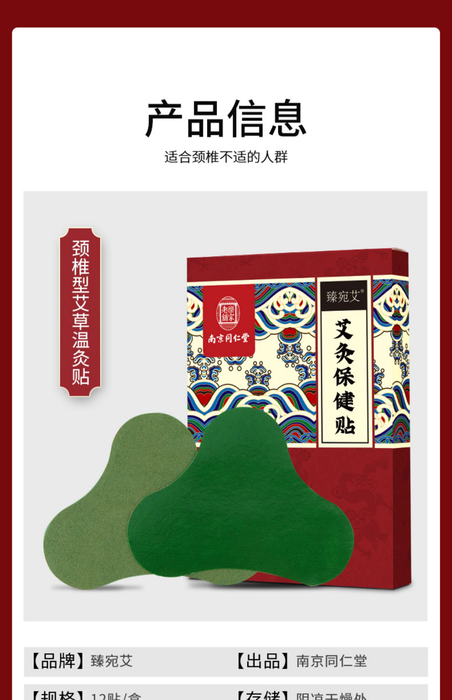 线下药店同款99元一盒!南京同仁堂始于1669年,人人熟知得百年大牌!艾草肩颈腰腿温灸贴12贴,秋冬季又来了!寒气入侵!膝盖疼,肩颈酸痛等?赶走肩颈腰腿不适,膝盖,颈椎,腰椎,通用型,方便又实用!