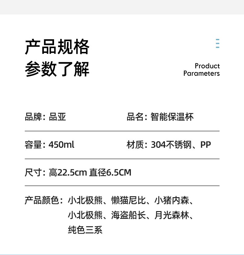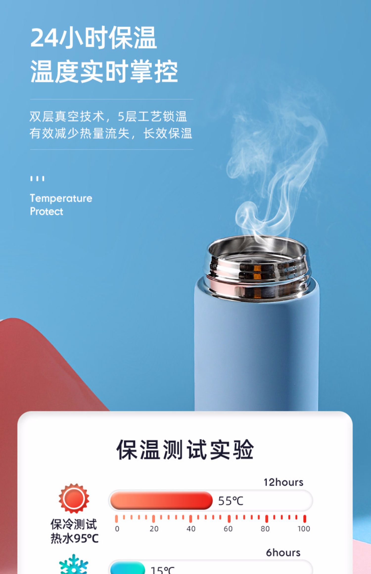 【天猫旗舰店】采用食品级PP材料,奥氏体型304不锈钢内胆,耐热耐低温,智能测温,知杯冷暖,超长24小时双效保温,360度旋转不滴漏,精工制造!温暖一杯子,幸福一辈子!