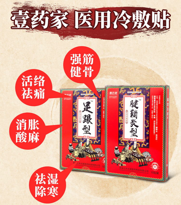 壹药家医用冷敷贴,祛风除湿、消炎止痛、活血散瘀、通经活络,分为腰椎型,颈椎型,肩周型,骨质增生型,关节型,腱鞘型,足跟型。对常见的风湿骨痛,颈肩腰腿痛有很好的康复效果