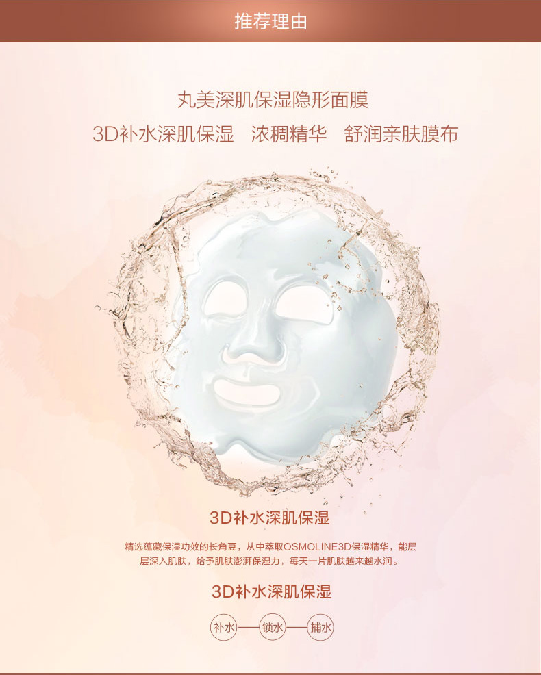 【丸美旗舰店】深肌保湿隐形面膜,滋润补水,水润通透,3D补水深肌保湿,浓稠精华,舒润亲肤膜布,精选蕴藏保湿功效的长角豆,能层层深入肌肤,给予肌肤彭拜保湿力。