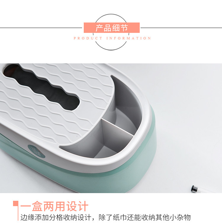 【创意收纳一盒两用】采用波纹抽口,简约不凡的北欧配色,贴心设计,更易抽取,大小纸巾都适宜的体型,2款配色随心选择,让纸巾也优雅一点~
