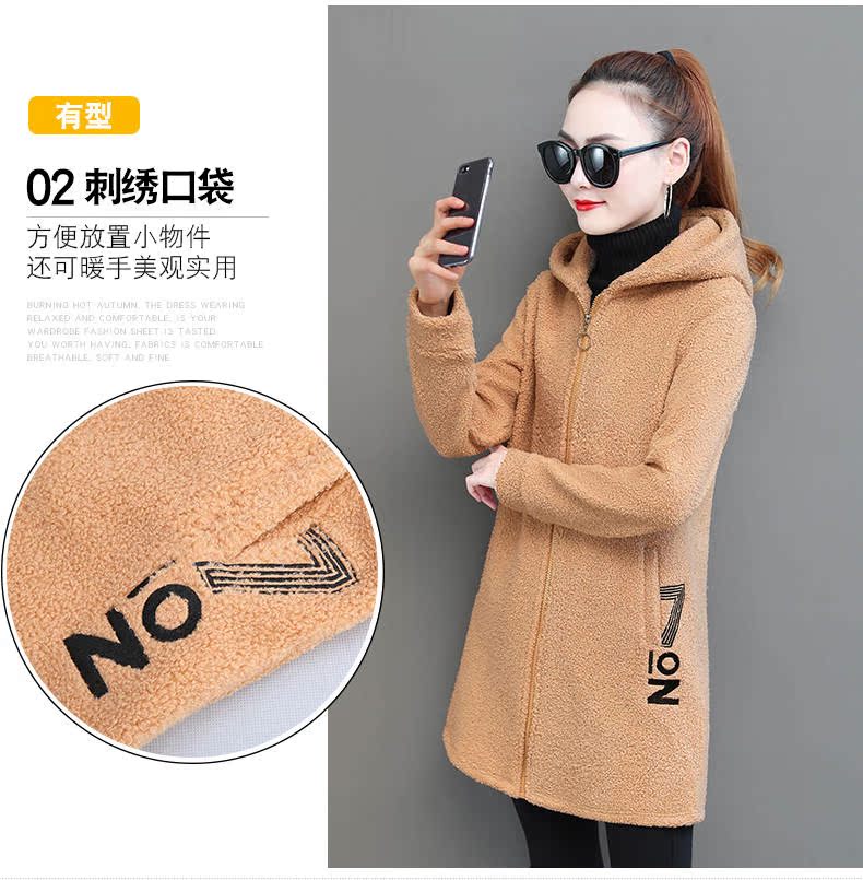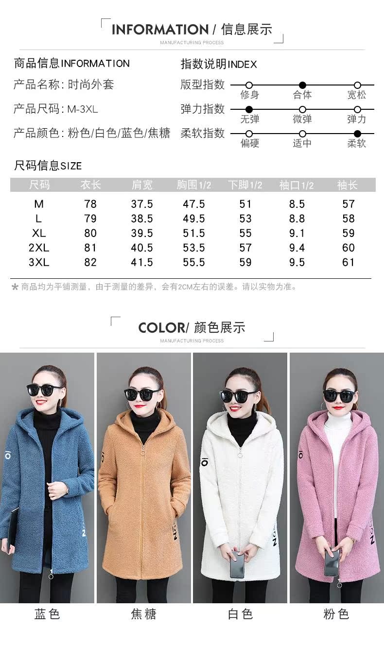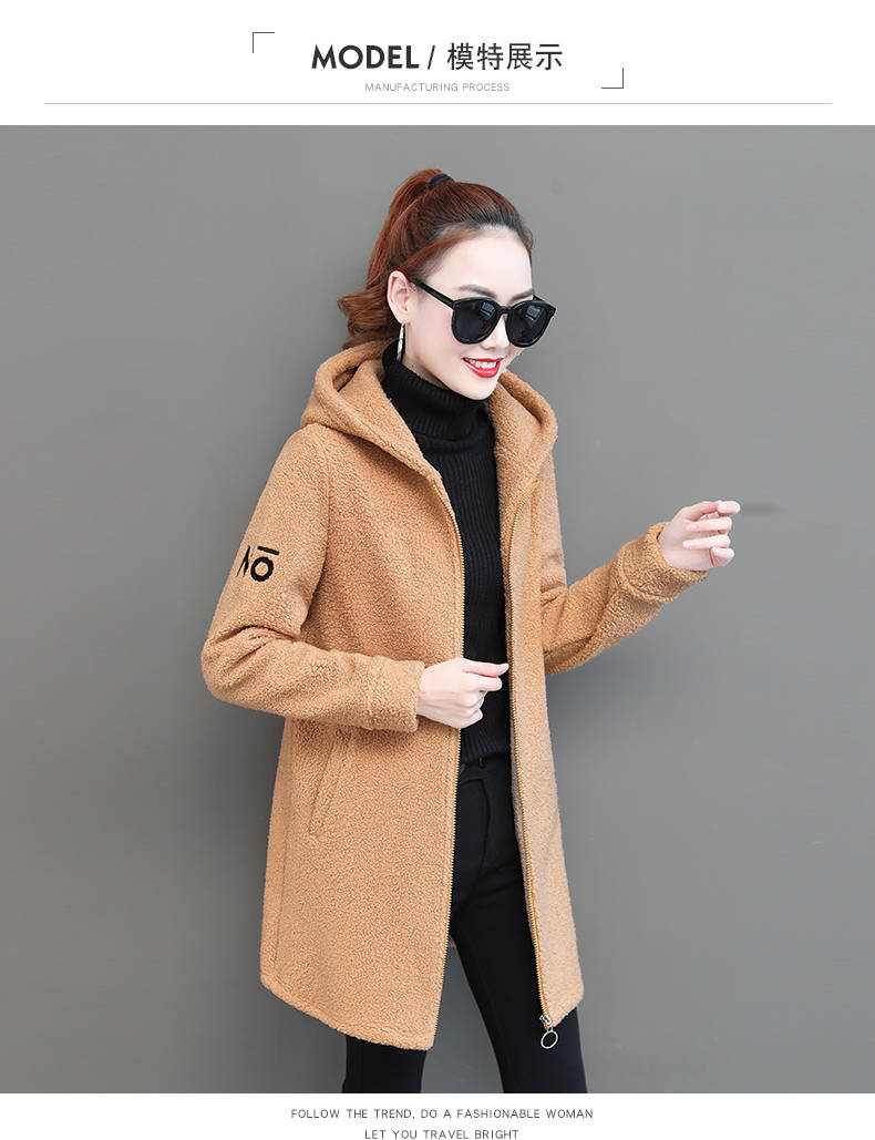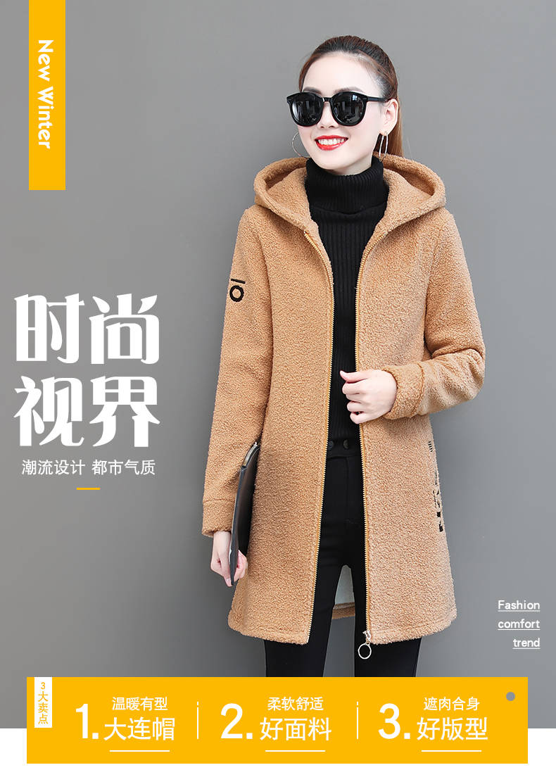 女仿羊羔毛颗粒绒加厚修身毛呢外套,精选面料,手感细腻柔软,垂顺质感,不起球、保暖性好~大口袋,美观又实用,利落大气的质感