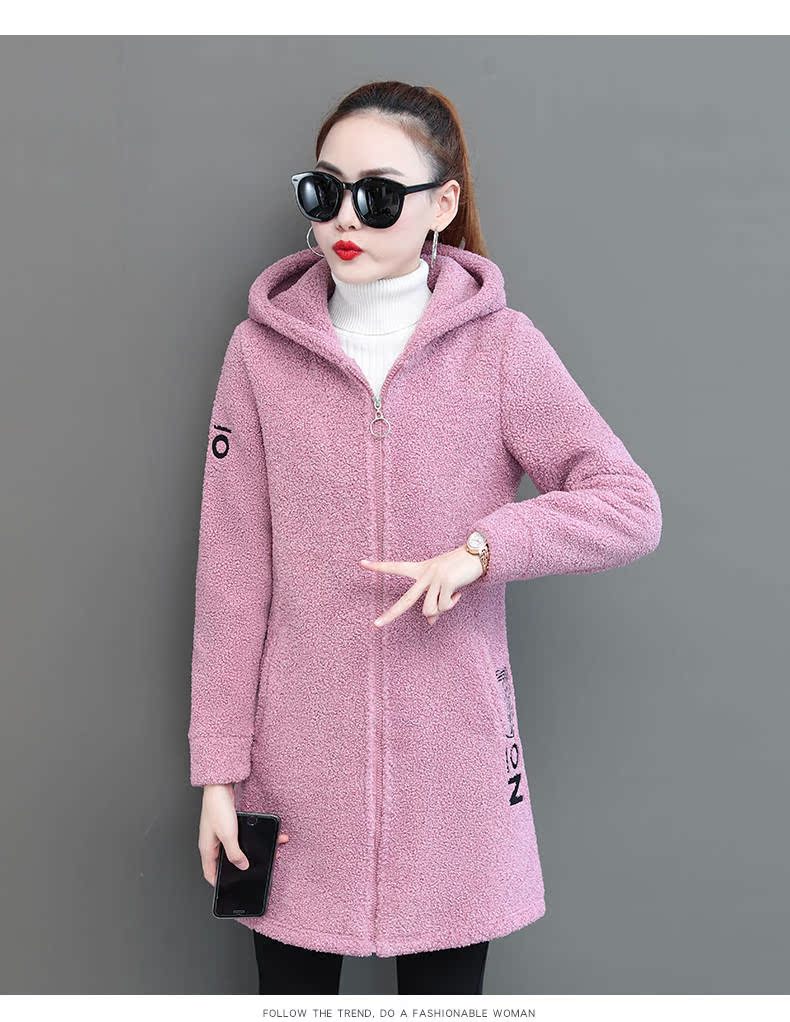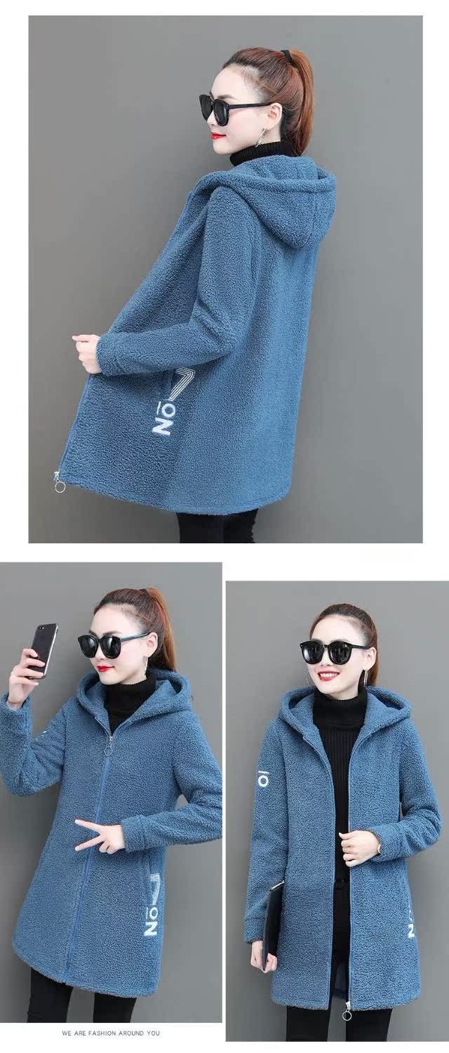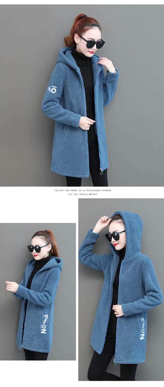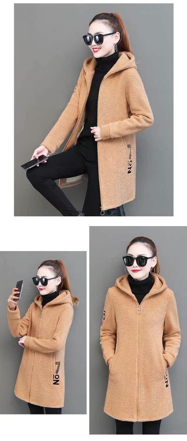 女仿羊羔毛颗粒绒加厚修身毛呢外套,精选面料,手感细腻柔软,垂顺质感,不起球、保暖性好~大口袋,美观又实用,利落大气的质感