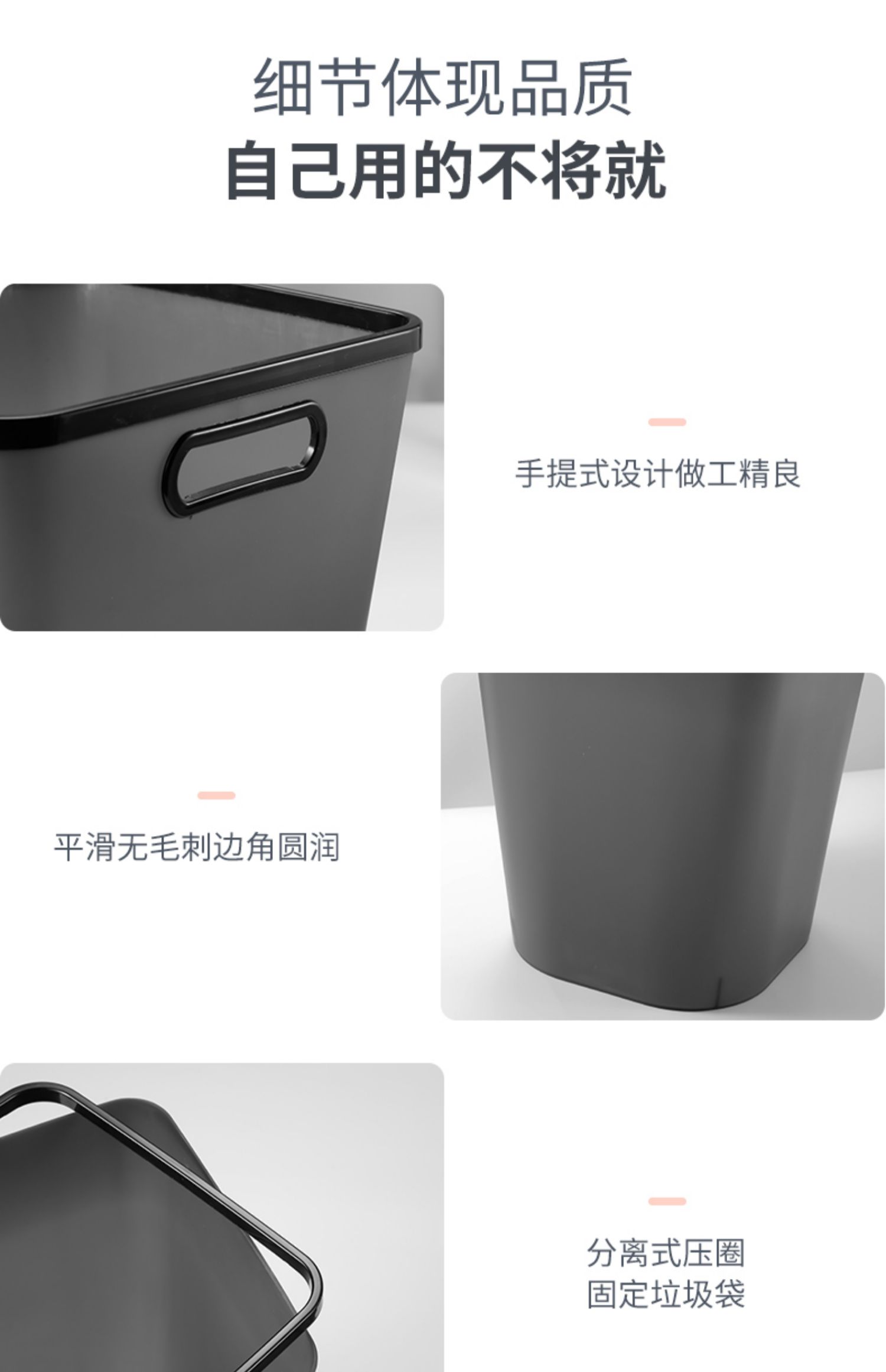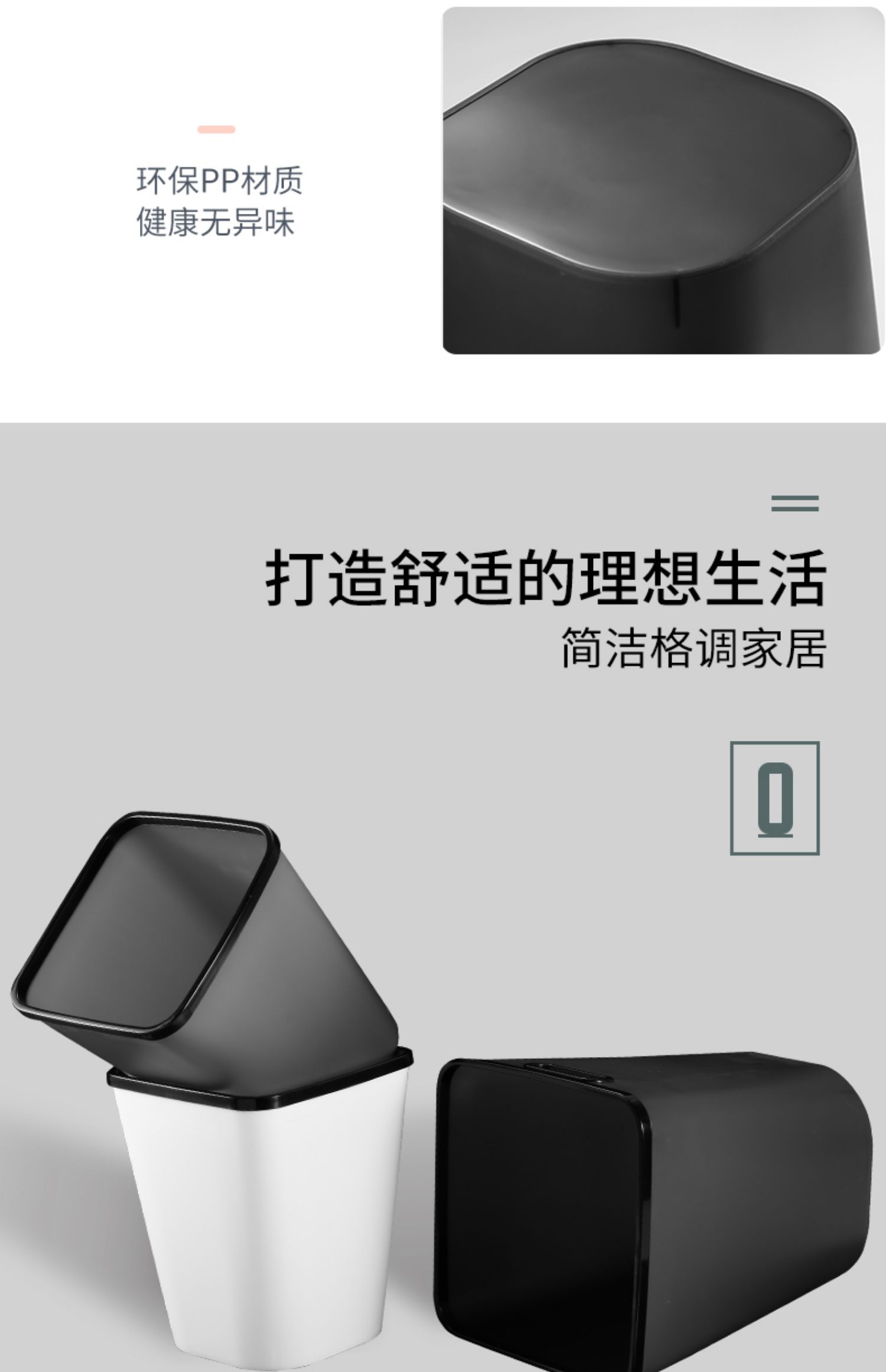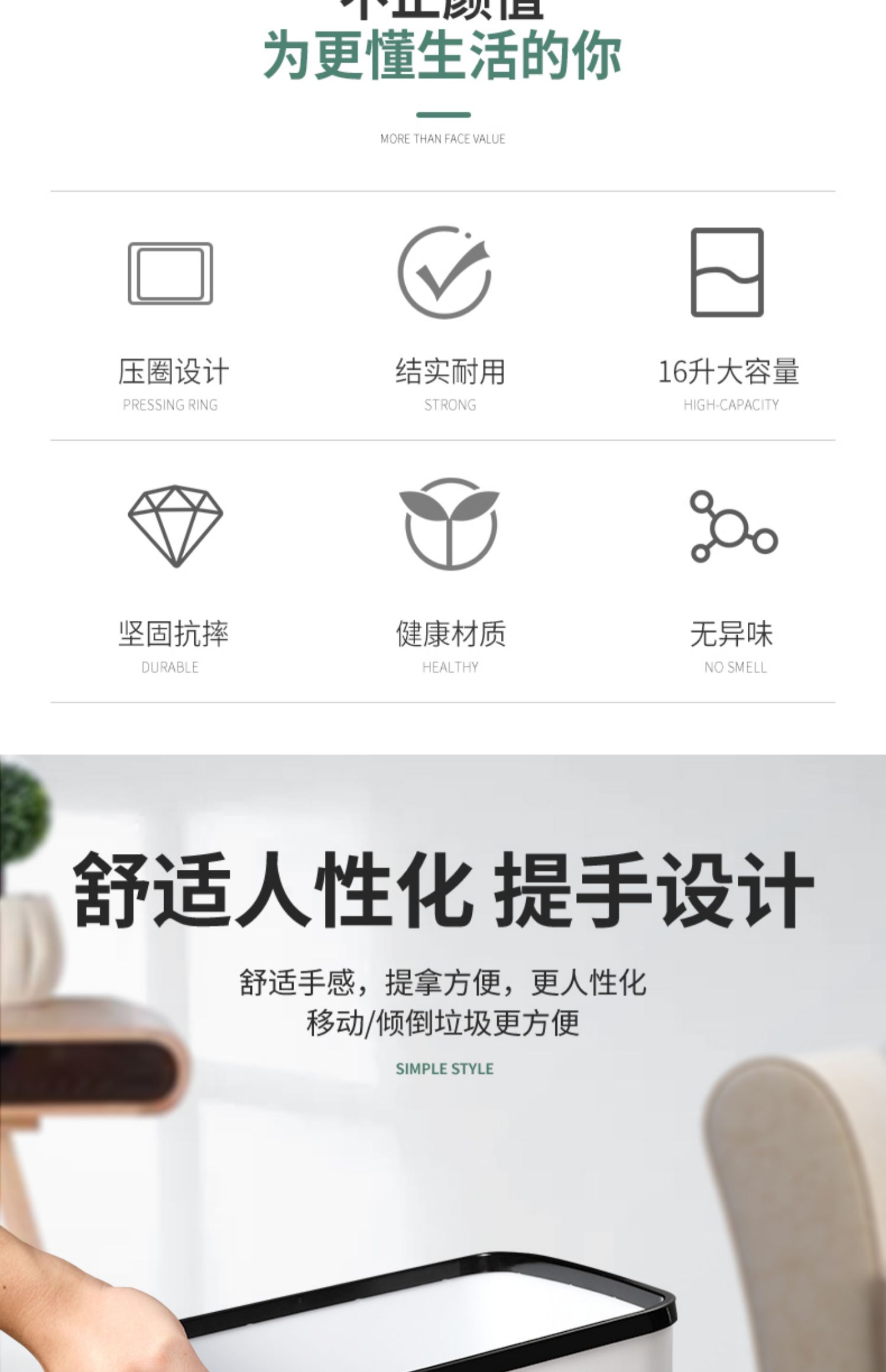 【赠运费险】北欧简约新生活必备垃圾桶,历史神价只卖一天,压圈设计,防止袋子下滑,健康材质,无异味,16升加大容量,加宽开口,方便倾倒垃圾~