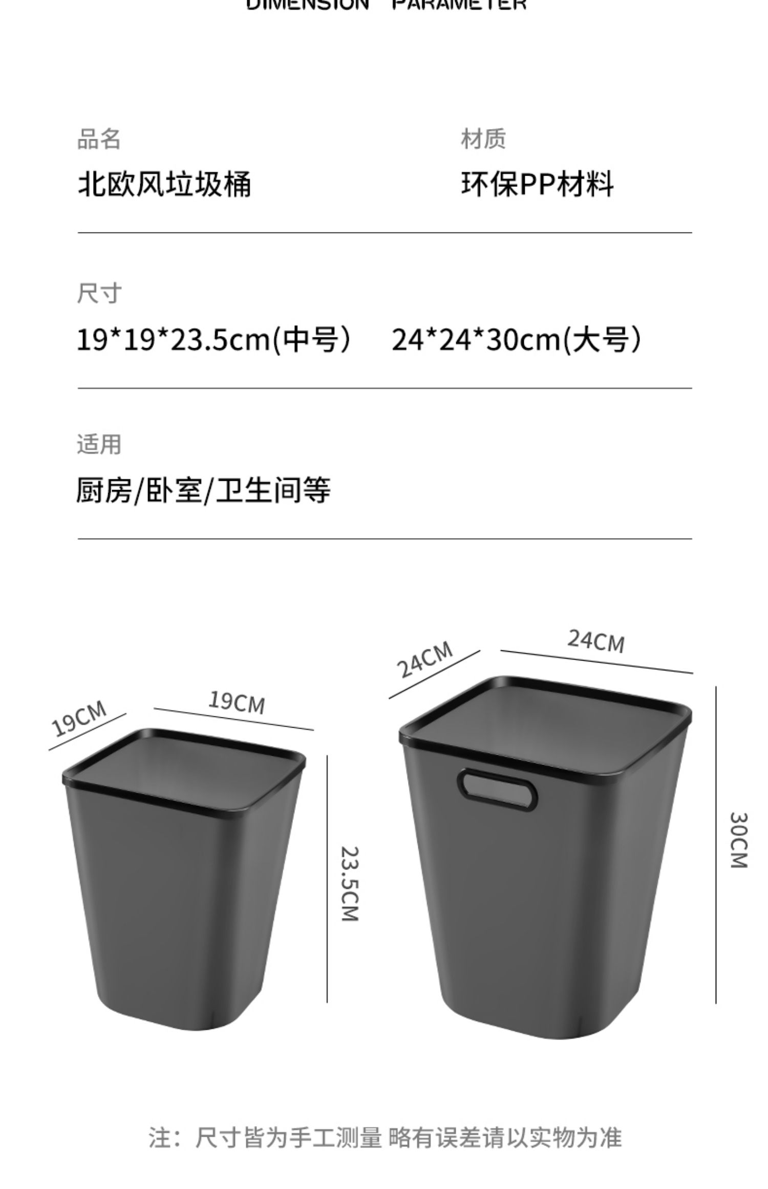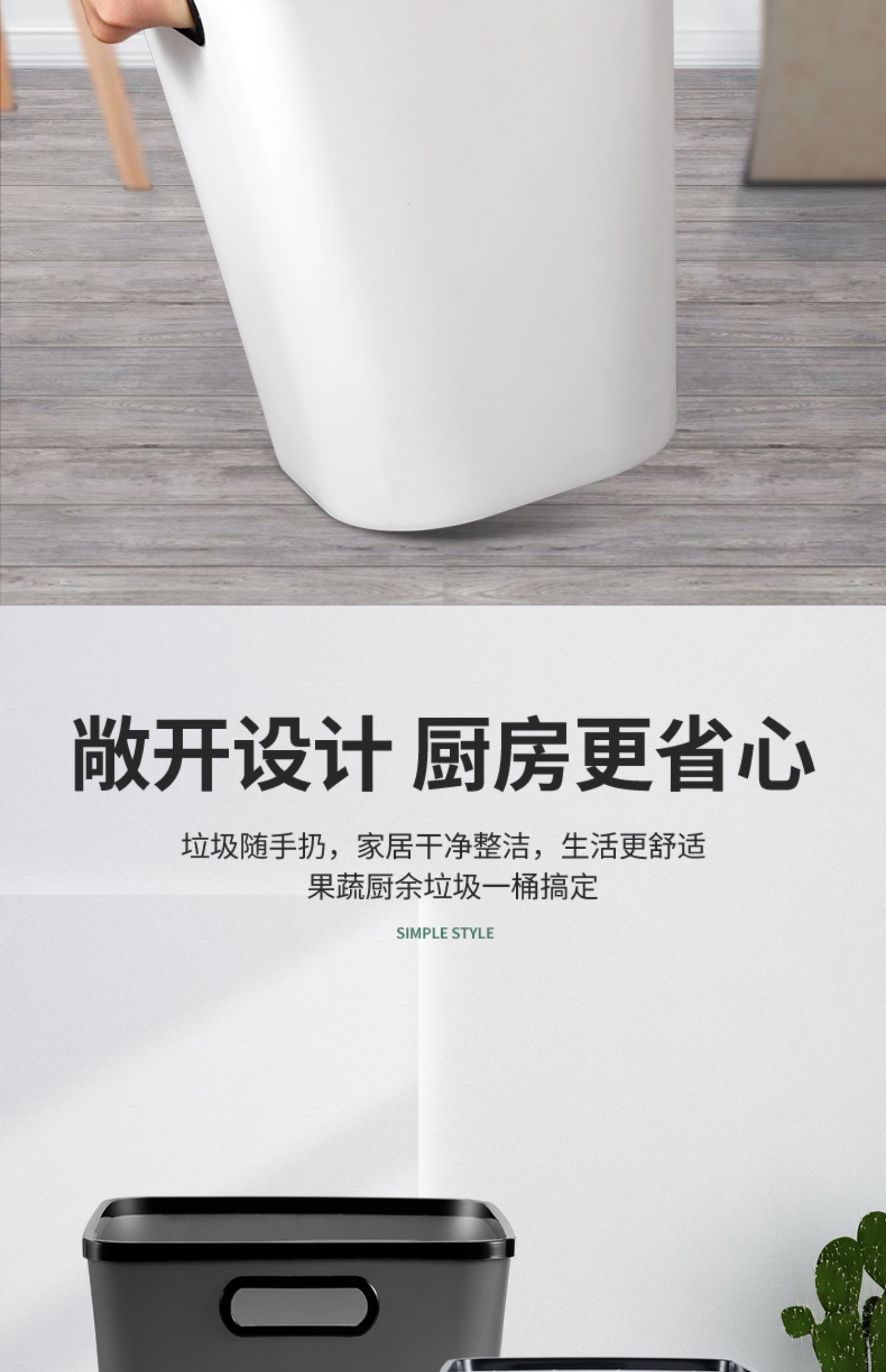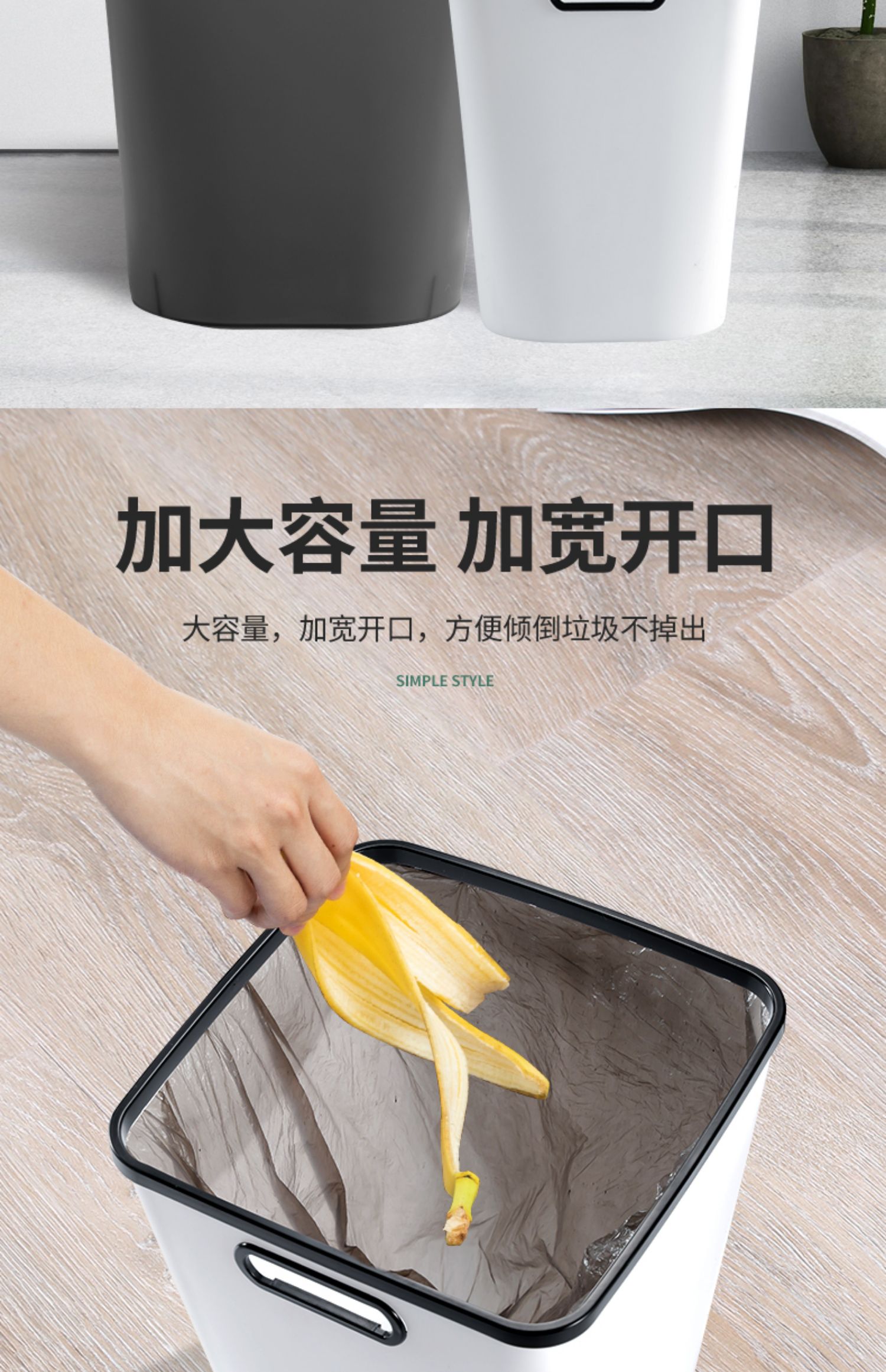 【赠运费险】北欧简约新生活必备垃圾桶,历史神价只卖一天,压圈设计,防止袋子下滑,健康材质,无异味,16升加大容量,加宽开口,方便倾倒垃圾~