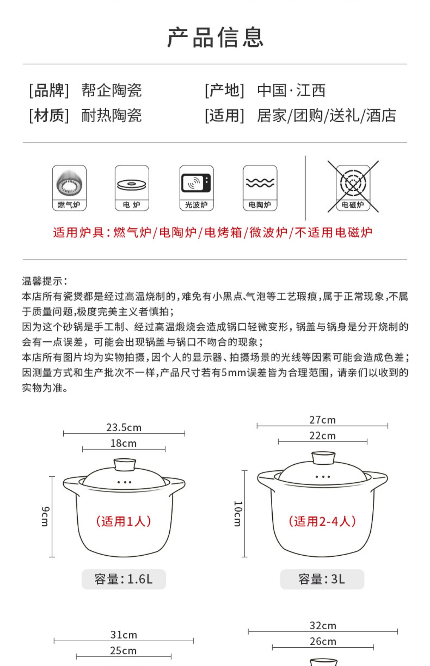 【天猫旗舰店,品质放心购】中国瓷都景德镇出品,耐高温,双耳防烫手柄,锅盖圆孔排气,防滑锅底受热均匀,冷热交替不开裂,健康养生从这一刻开始!【赠运费险】
