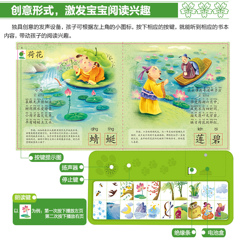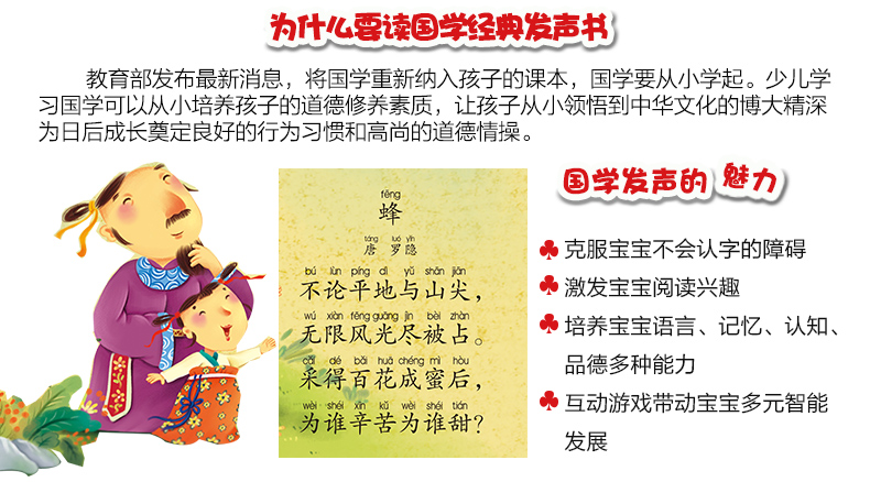 【乐乐趣】【发声书】送给孩子成长的礼物!跟着标准发音读古诗,精选40首幼儿必读古诗,拼音+发声导读+生字,锻炼孩子语言能力,从小培养学习习惯!【赠运费险】