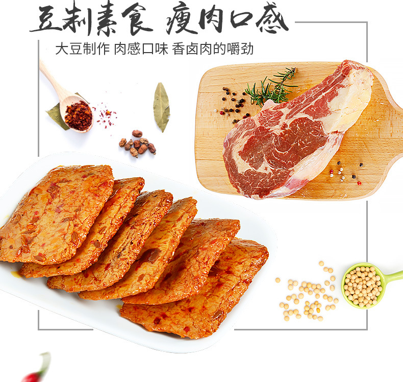 【年货小零食】风靡quan网的零食!舌尖上的豆香美味,长不胖的素肉,口感劲道,香辣有味,比豆干好吃,比辣条更多嚼劲!越嚼越香!吃货们千万别错过,好吃停不下