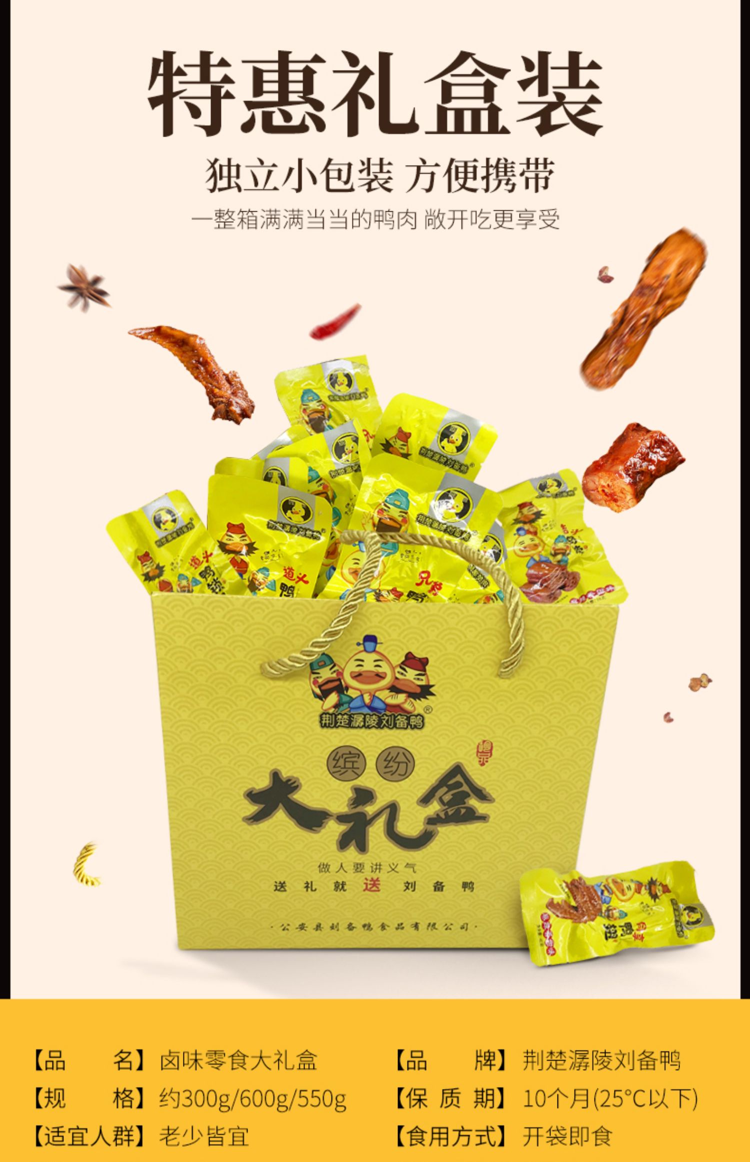 刘备鸭精美礼盒装500g!超市同等份量50元起!精选食材,鲜香带甜,越啃越香!舌尖上的美味,刺激你每一寸味蕾!【支持7天无理由退货】