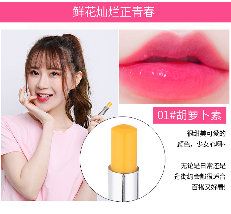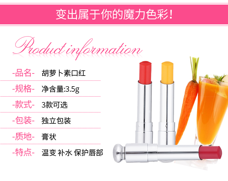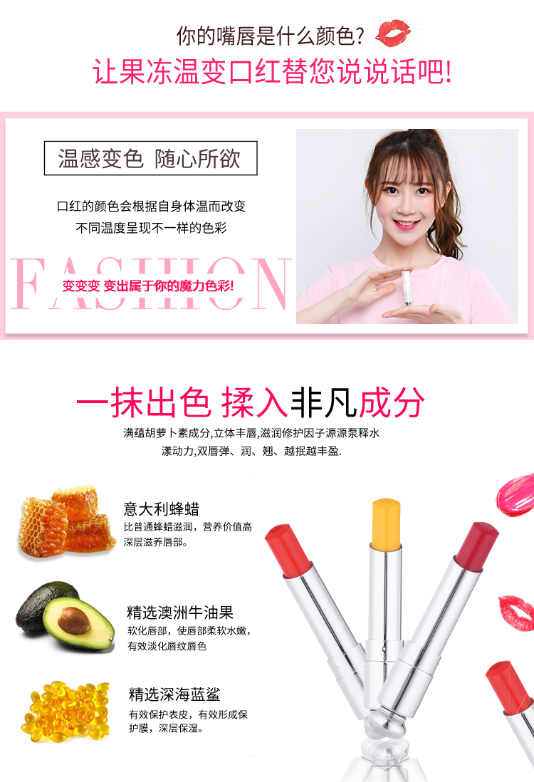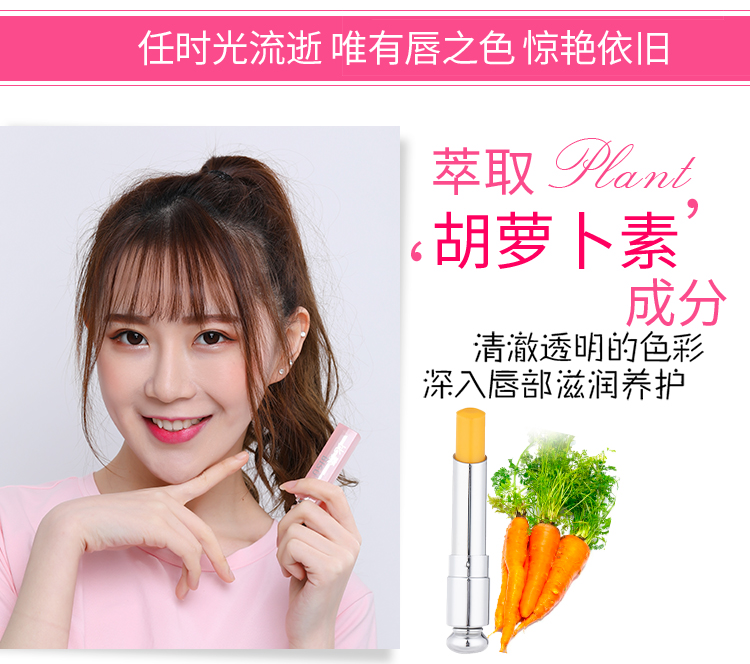 【纯福利,只要9.9】迪奥同款胡萝卜素果冻口红,温变幻色,根据体温和ph值变换颜色,质感细腻不脱色,滋润养护,改善唇部,成分温和。让你拥有与众不同的唇色!
