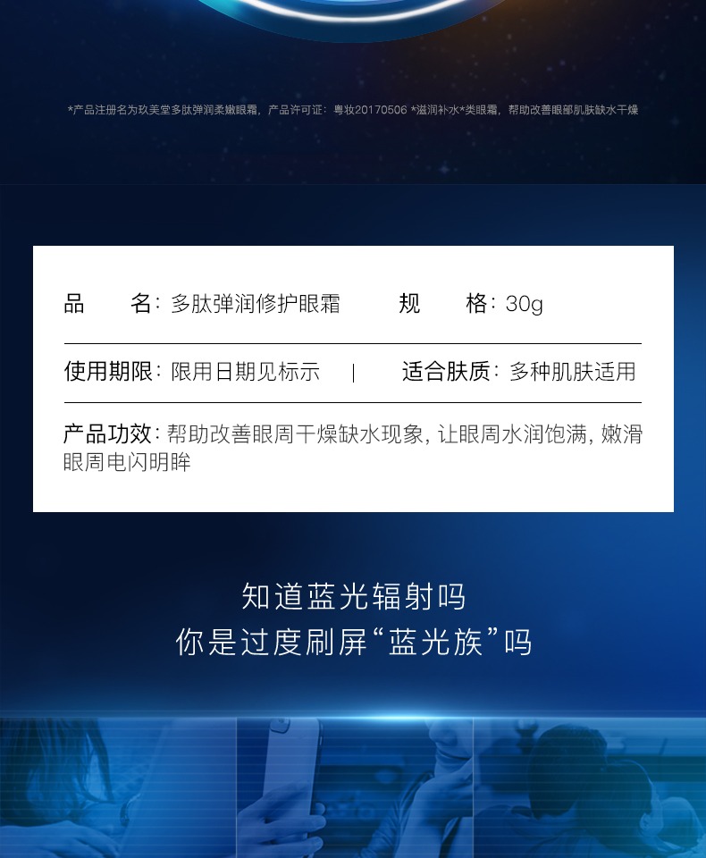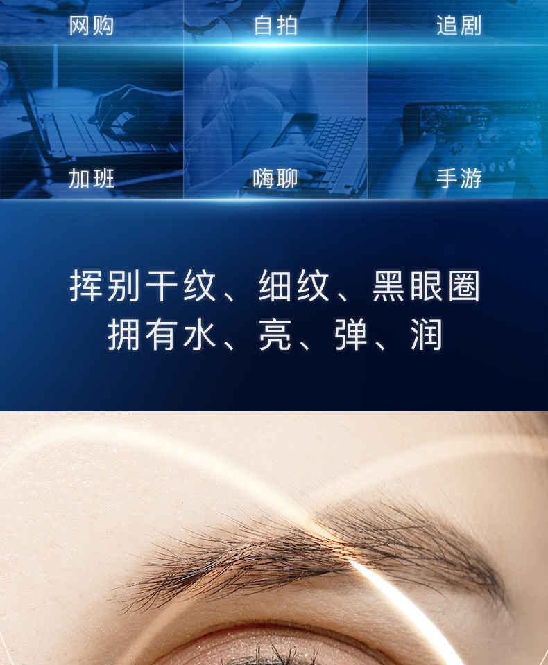 拯救过度刷屏“蓝光族”,玖美堂红外线电动眼霜!含奢华成分酵母菌多肽,搭配医美ji高频率按摩头,每分钟按摩10万次,有效促进营养吸收,增强肌肤弹性!每天5分钟,跟黑眼圈、细纹说拜拜