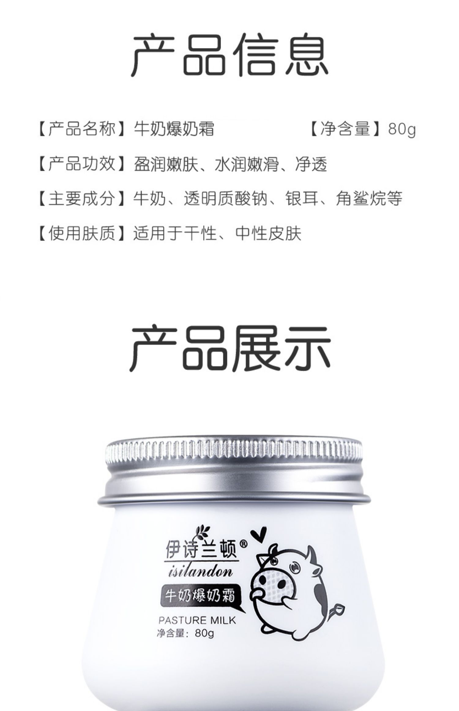 【伊诗兰顿】布丁牛奶爆奶霜,滋润保湿嫩肤锁水,提亮肤色,淡化细纹奶肌素颜面霜,奶一下不油腻下单就送你网红美白淡斑面膜