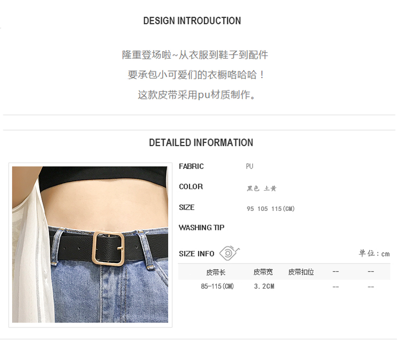 一款小巧的PU方扣皮带,简约百搭结实耐用,简约不简单,经典复古,搭出好心情,营造不一样的热辣风情