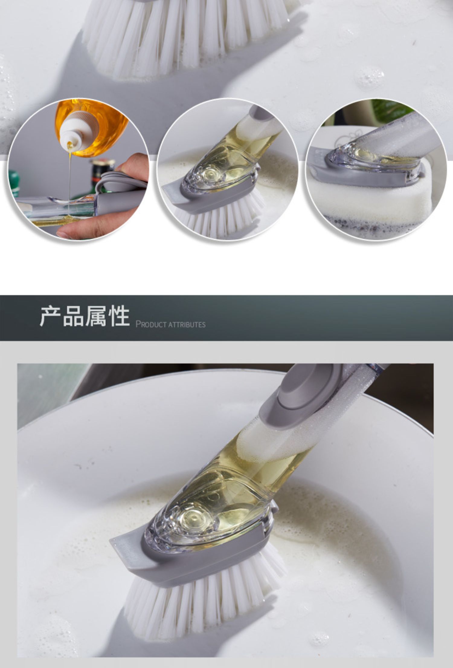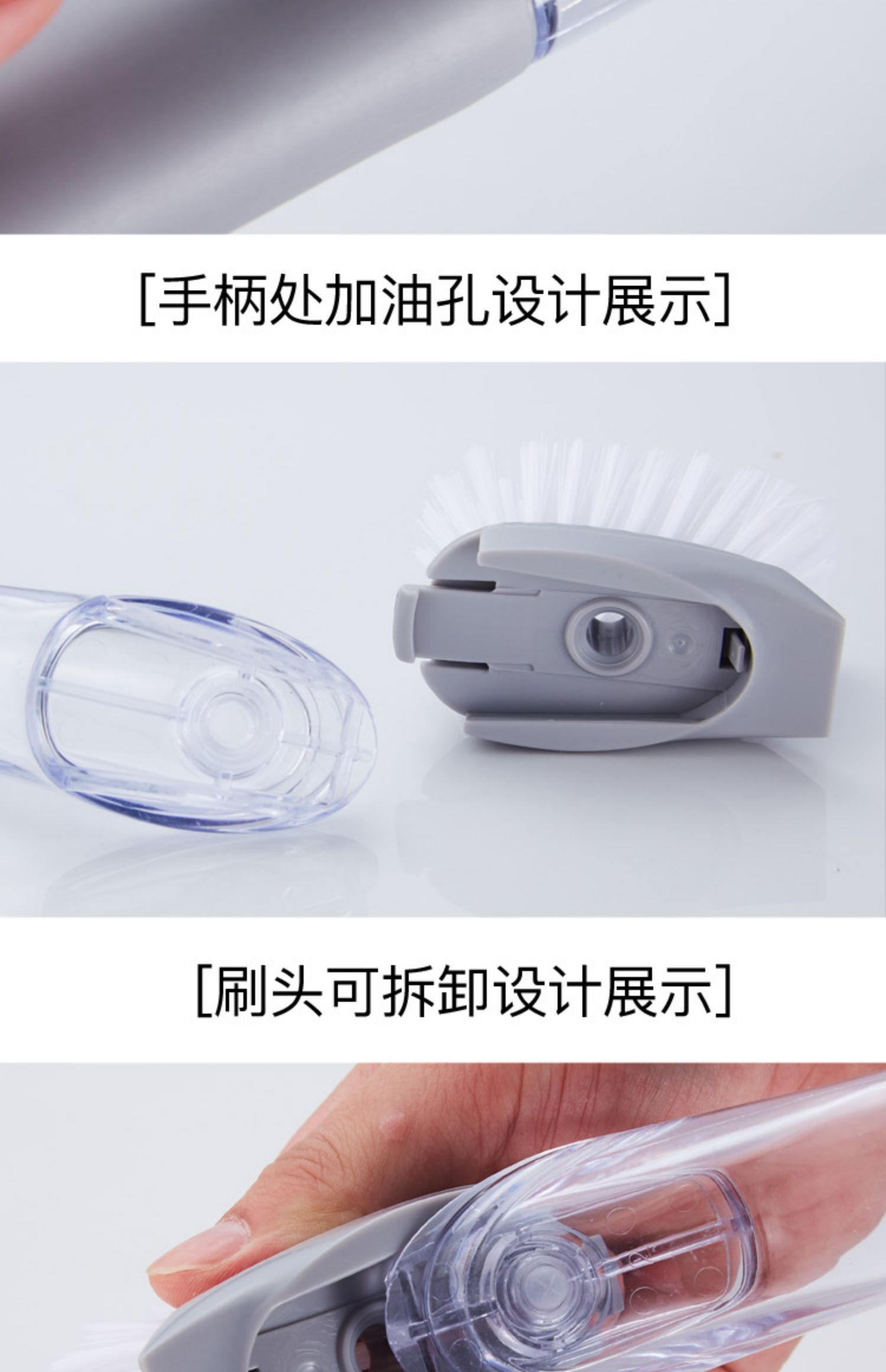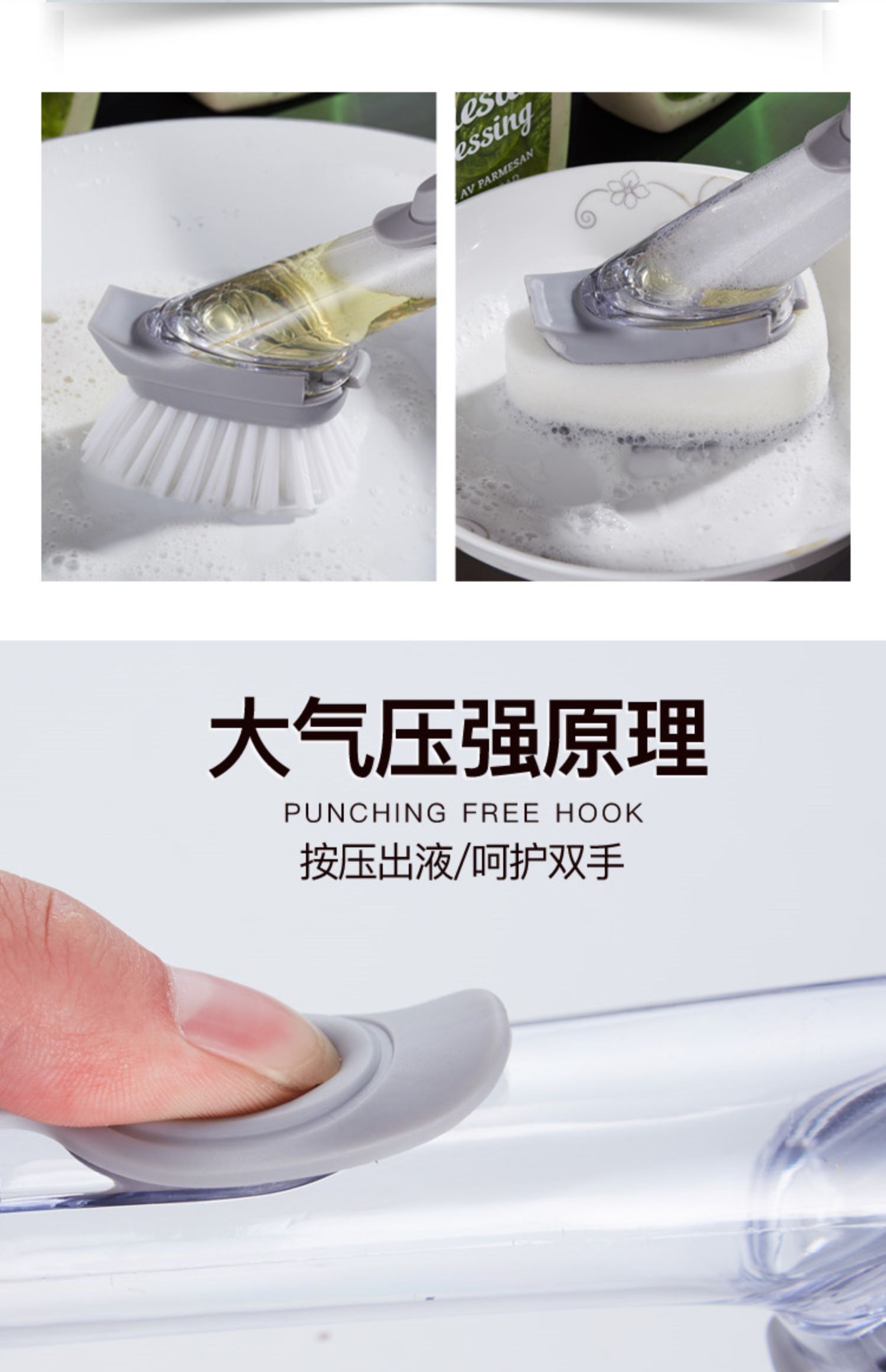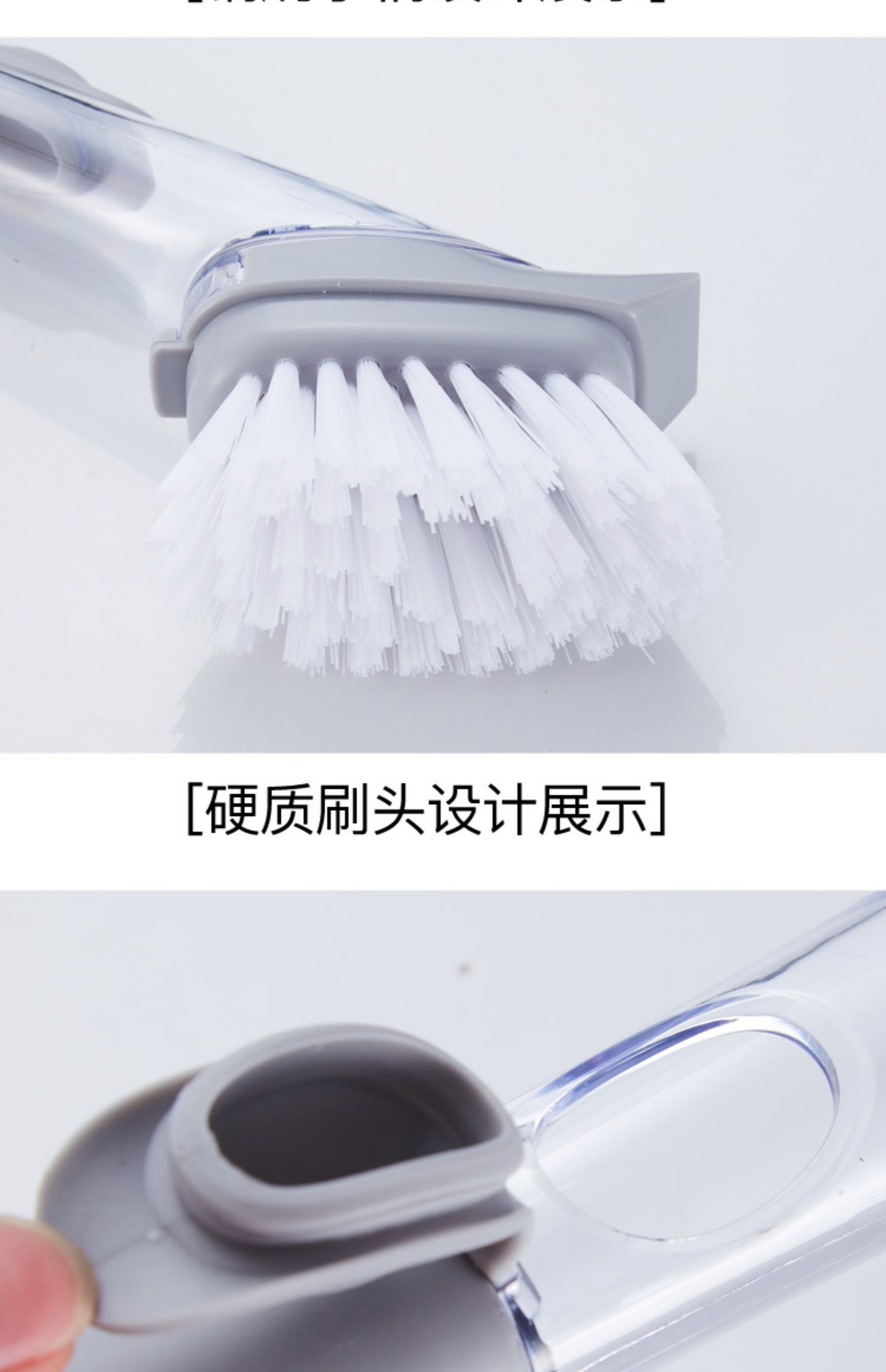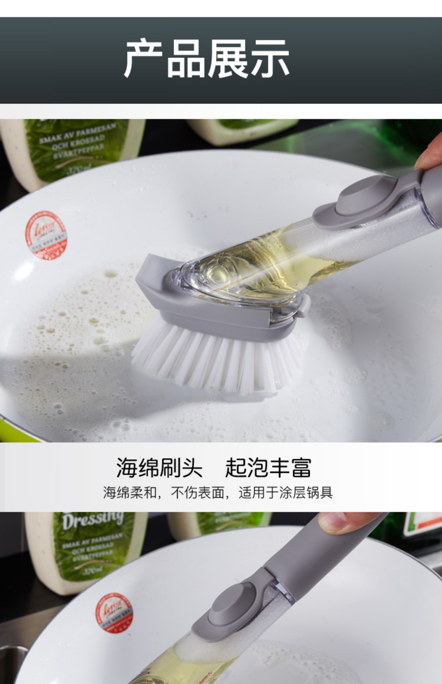 【送4个刷头】刷锅神器。自加液可储存洗洁精。不伤锅具,不粘油污。挤压出液不浪费,保护双手。刷头可轻松替换。背部刮铲轻松去除烧焦锅灰,一刷多用抓紧入手!