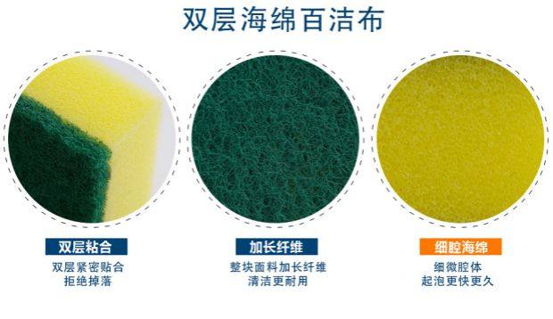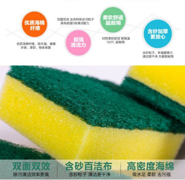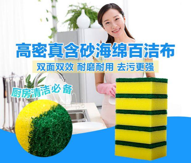 高密真含砂海绵百洁布,双面双效,耐磨耐用,吸水强,丰富泡沫,去污更强,细腻不伤表面,厨房清洁必备,速速抢购!