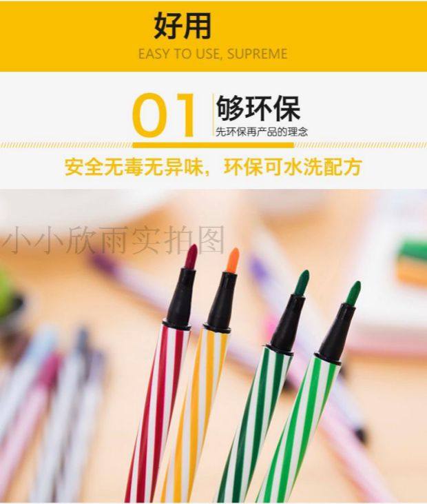 进口墨水,安全无毒,颜色鲜艳,可水洗,水分充足饱满,每支笔都好看,可水洗,给孩子一个绘画童年!