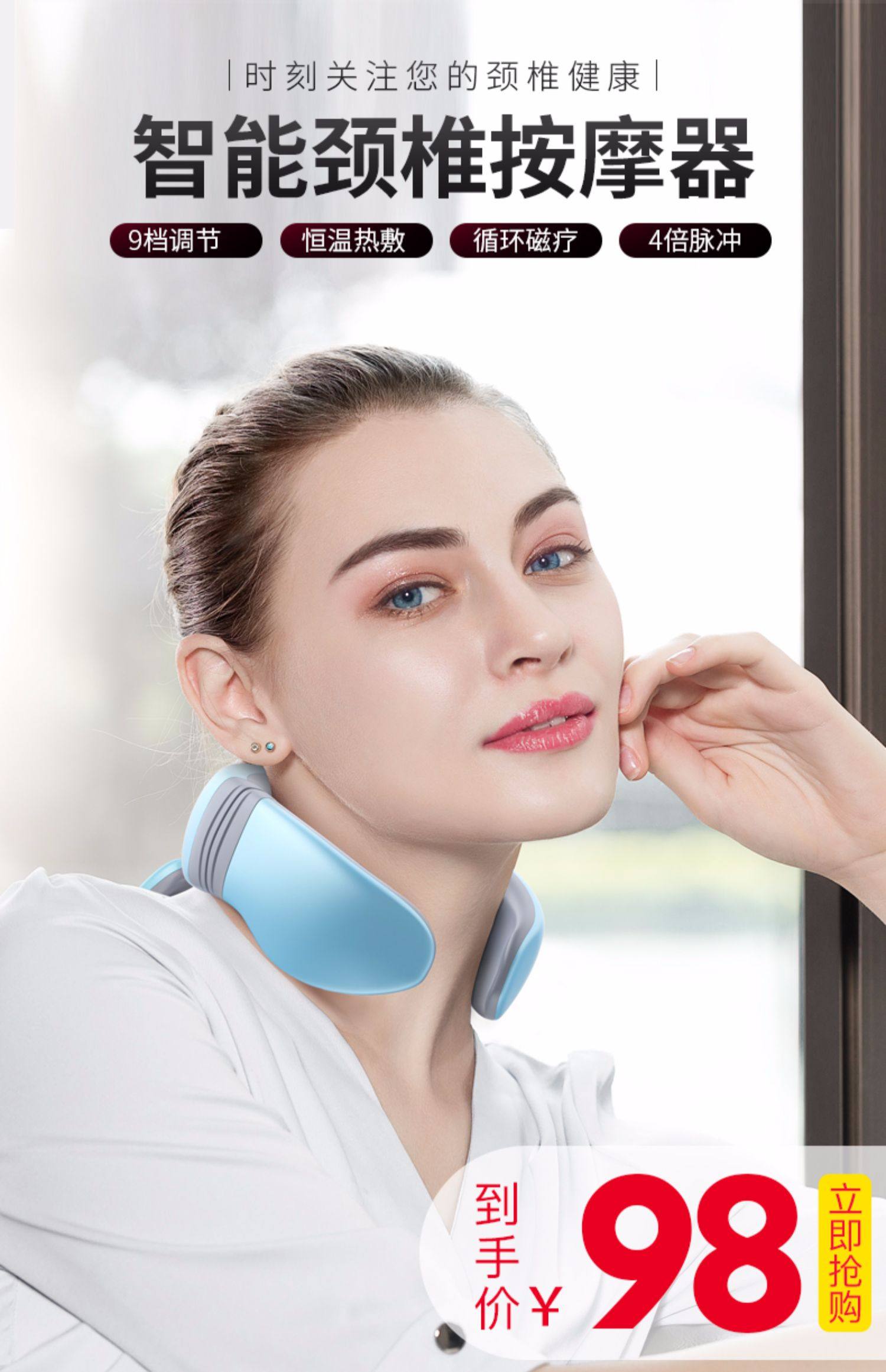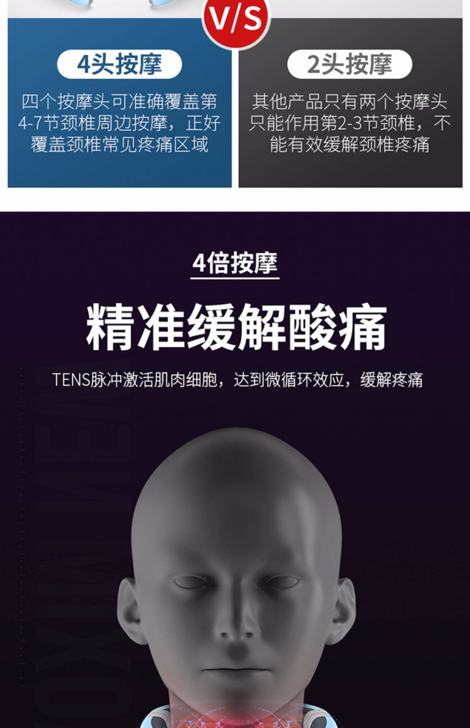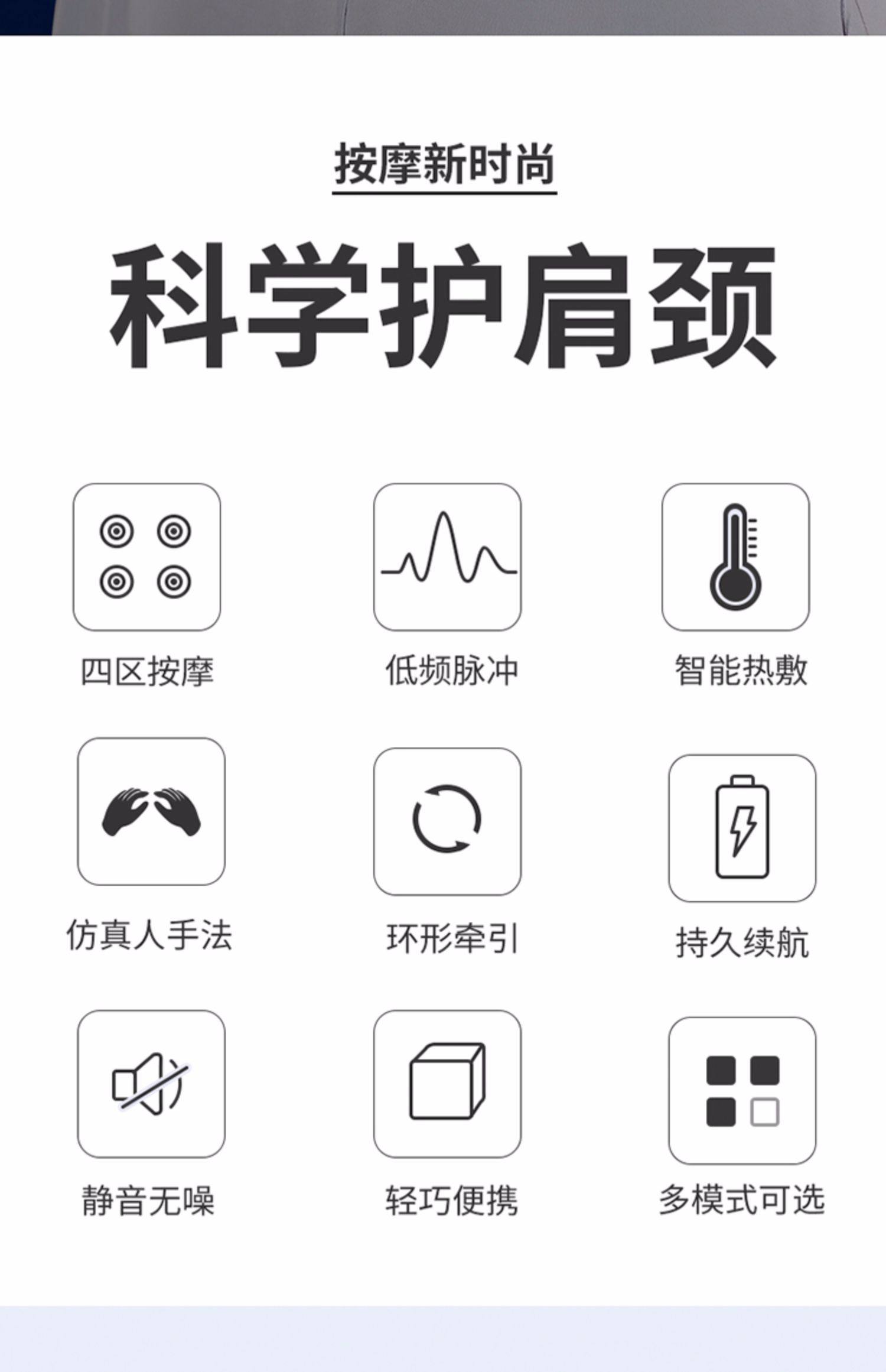 多功能颈椎按摩仪!舒缓颈椎,低频脉冲!4头按摩,更全面,更精准~仿真人按摩,告别颈椎酸痛,让您倍感舒适!轻盈舒适,随身携带更方便!【赠运费险】