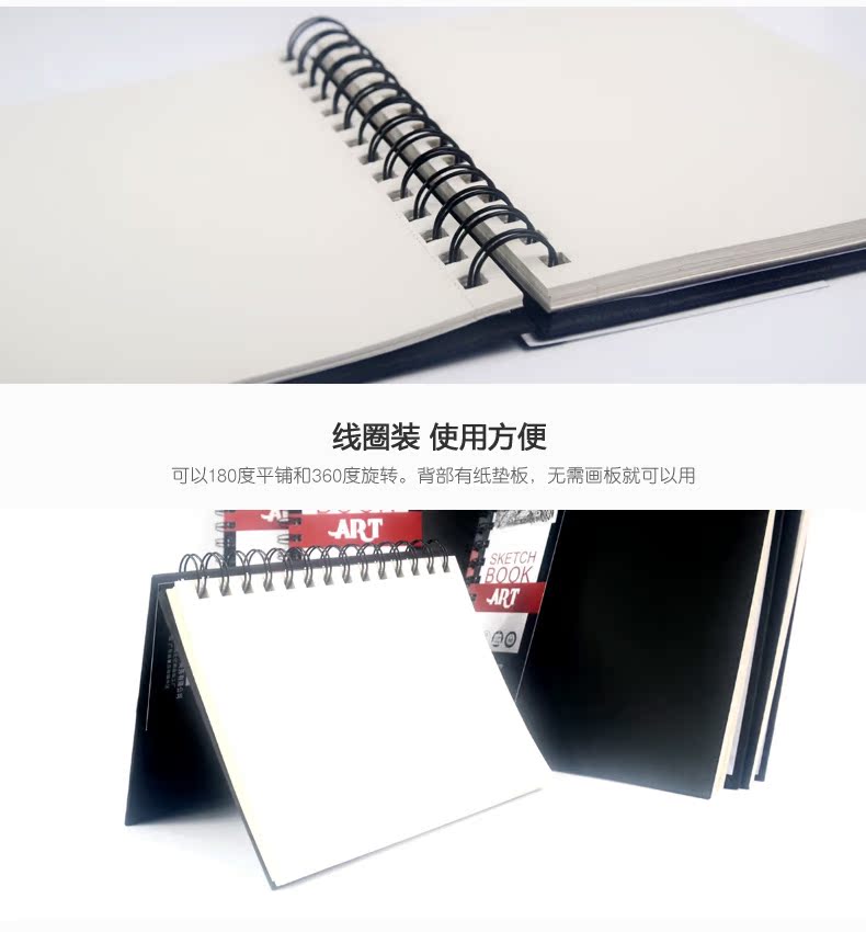 30年匠心品质,原生木浆,加厚内页,厚实耐用,不起毛不打滑!素描彩铅绘画耐擦易上铅,纸质强韧,180度平摊,锁线不掉页,绘画涂鸦更方便~