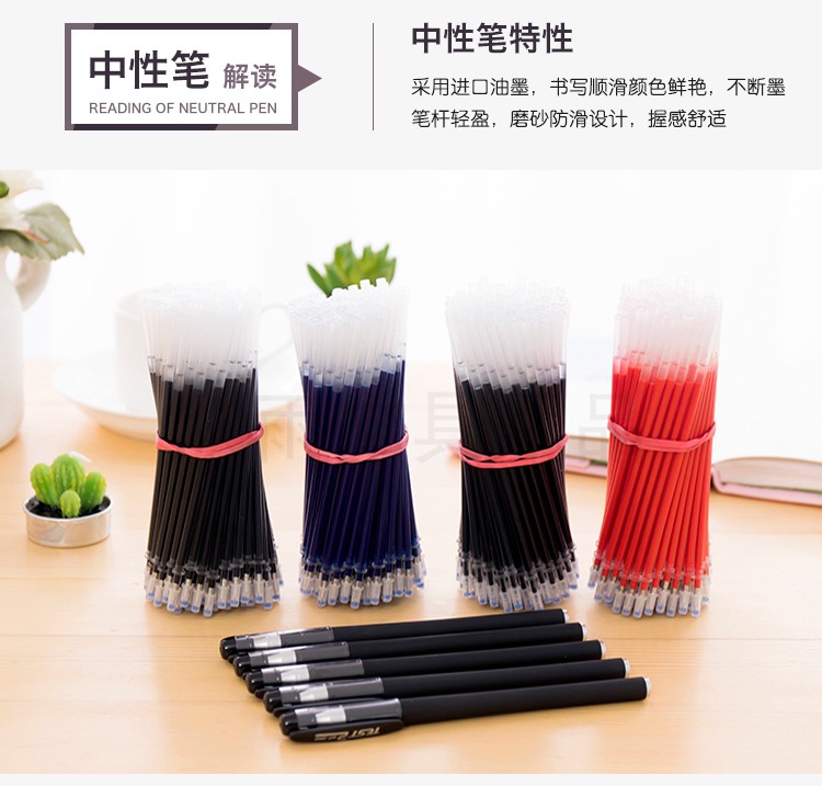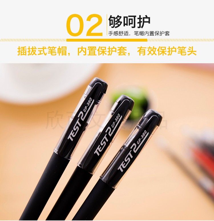 笔尖处的保护套,柔软富有弹性,套在中性笔芯上保护笔头不受损,笔芯出水流畅,不挥发,不漏墨,书写顺滑,字迹清晰干净。