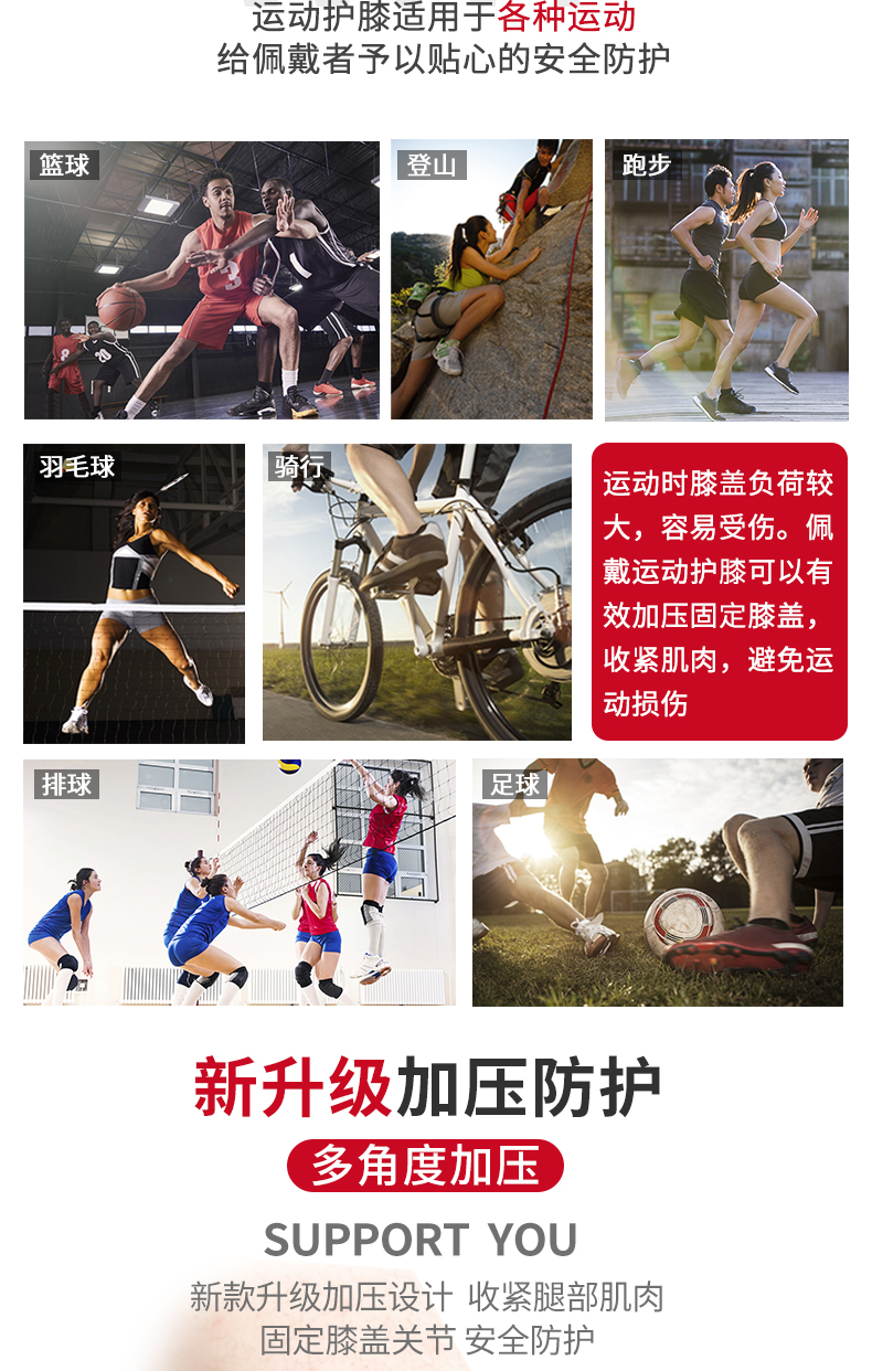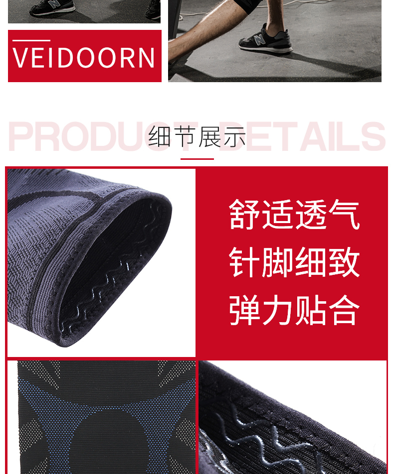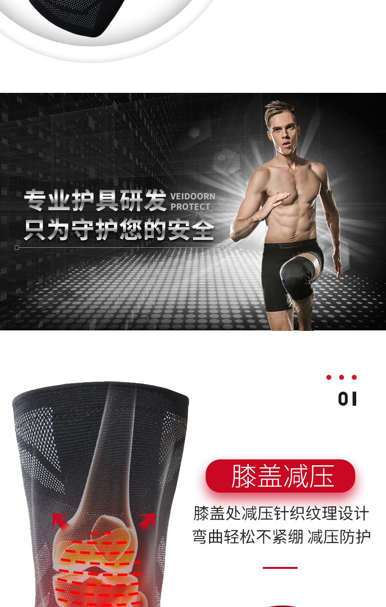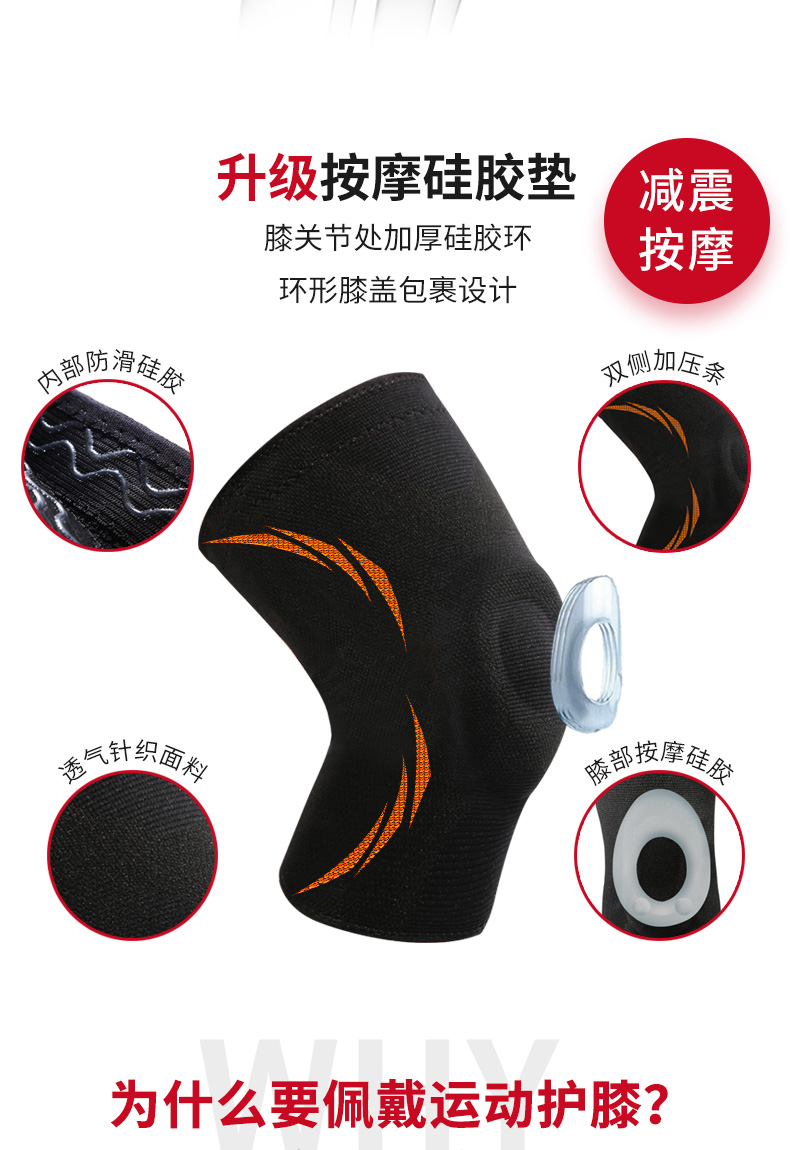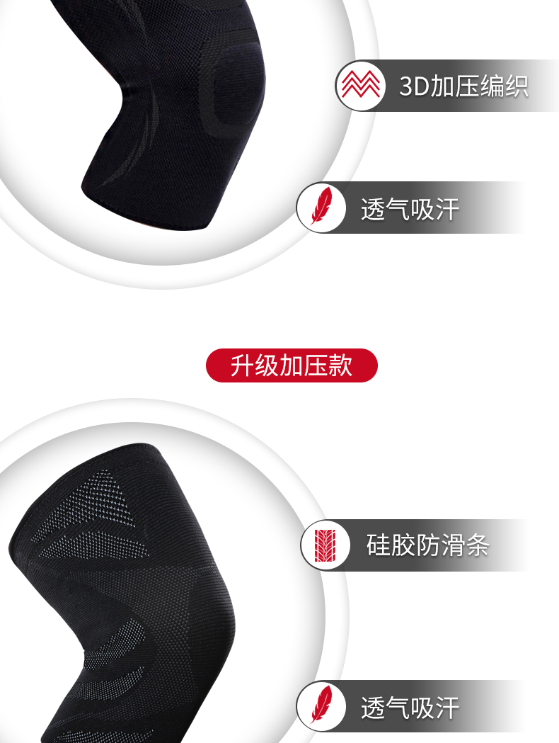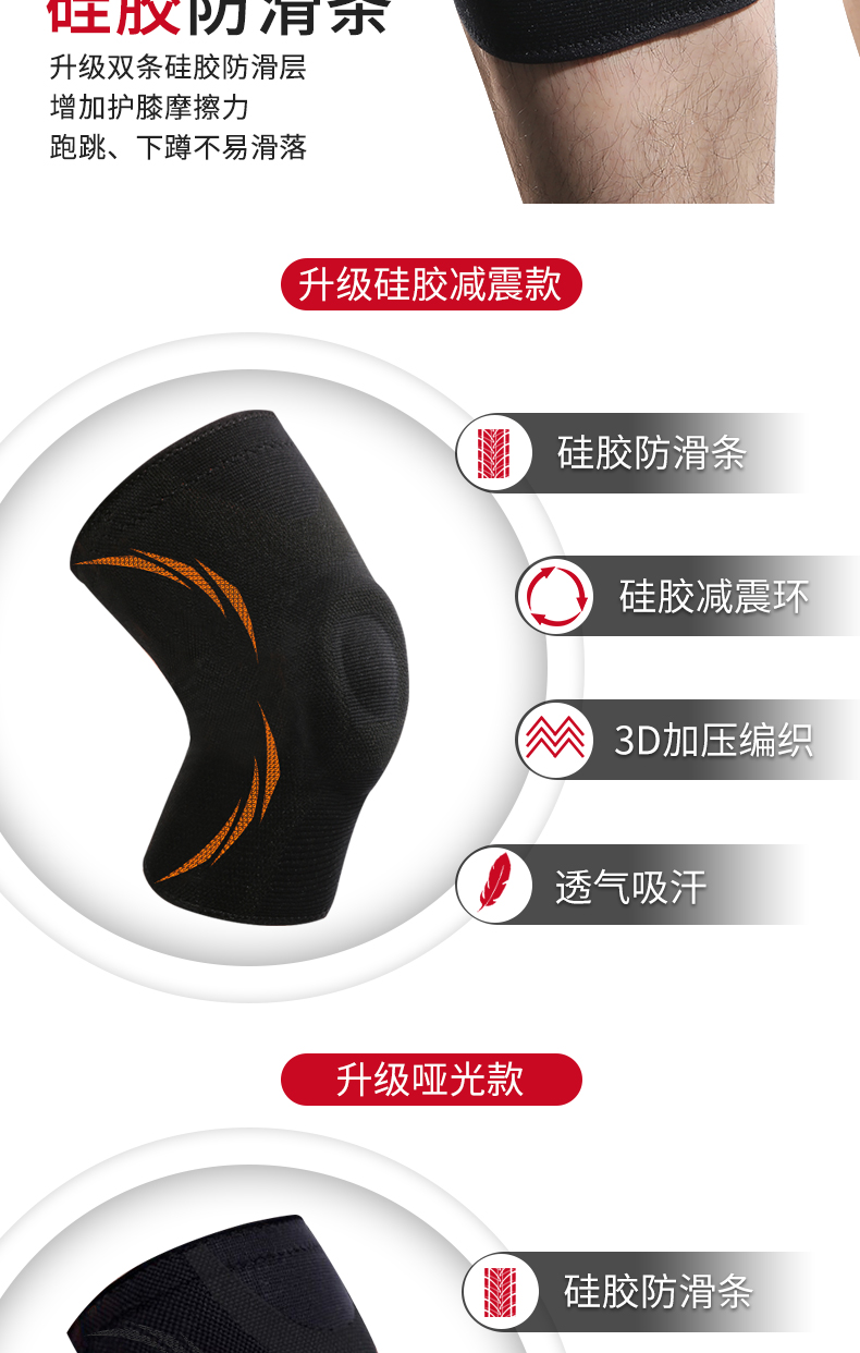 硅胶防滑,3D弹力针织,高弹透气,膝盖减压,轻薄透气,贴合舒适,守护您的健身之路