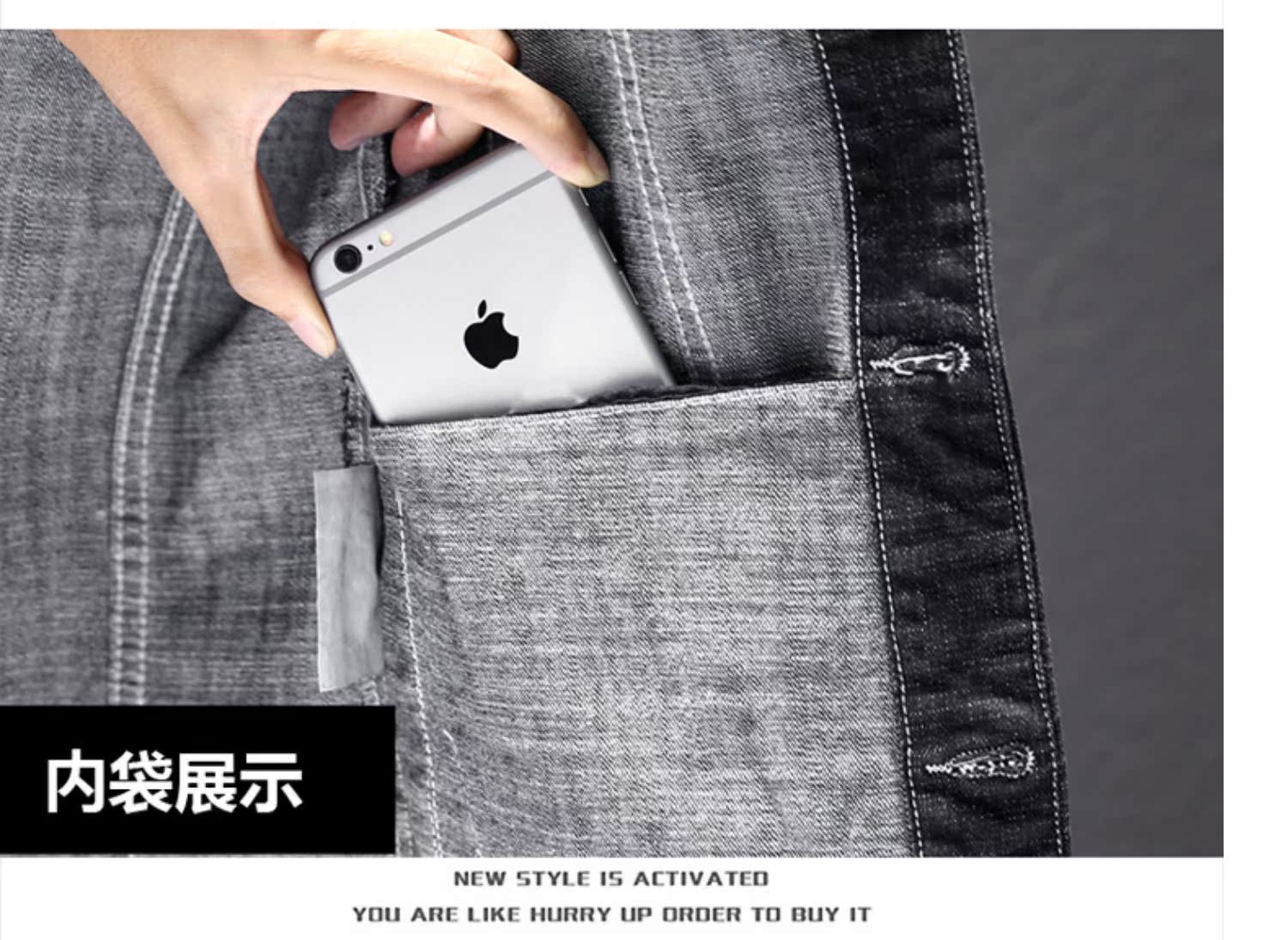 ins工装春季外套男,韩版潮流宽松夹克连帽休闲黑色牛仔衣褂,时尚百搭