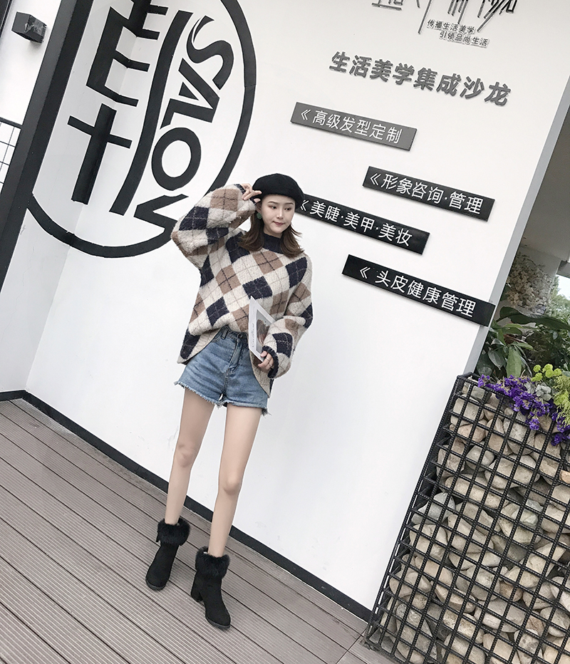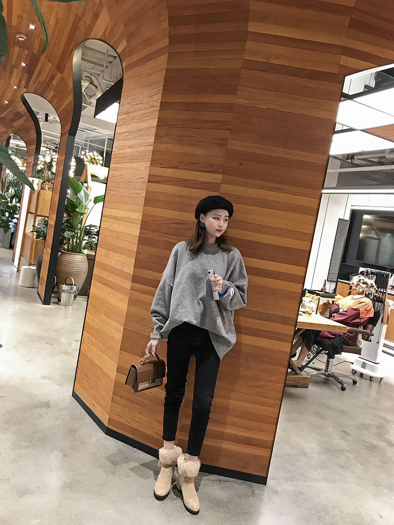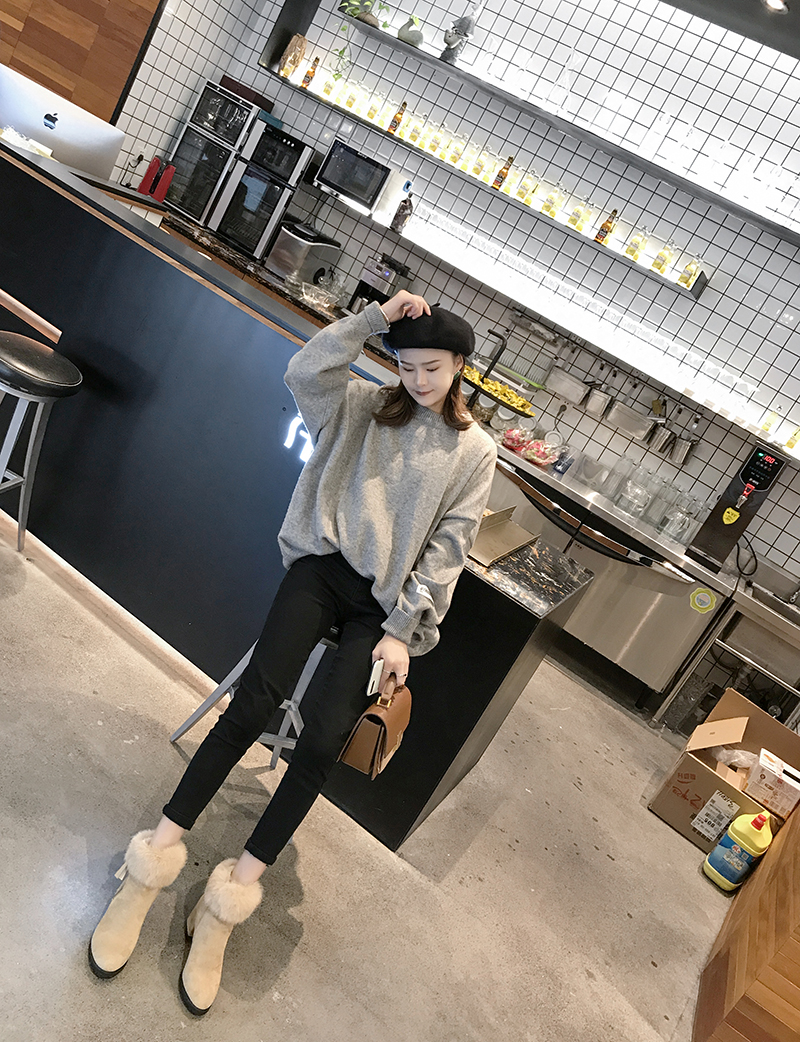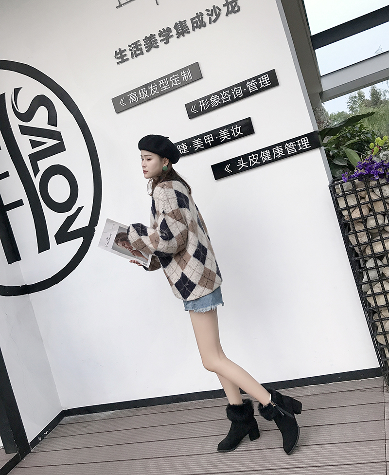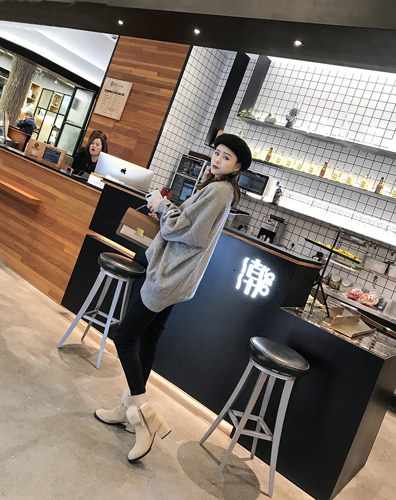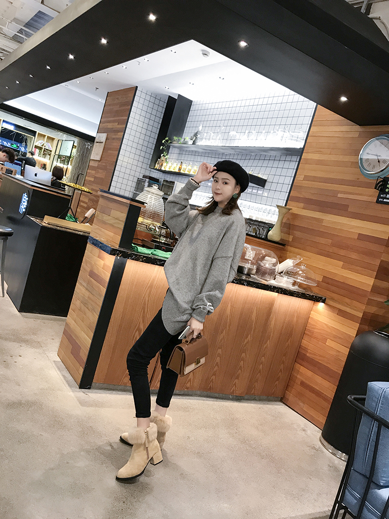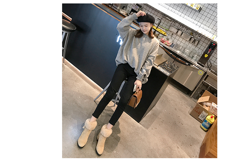 短靴加绒保暖粗跟尖头兔毛马丁靴