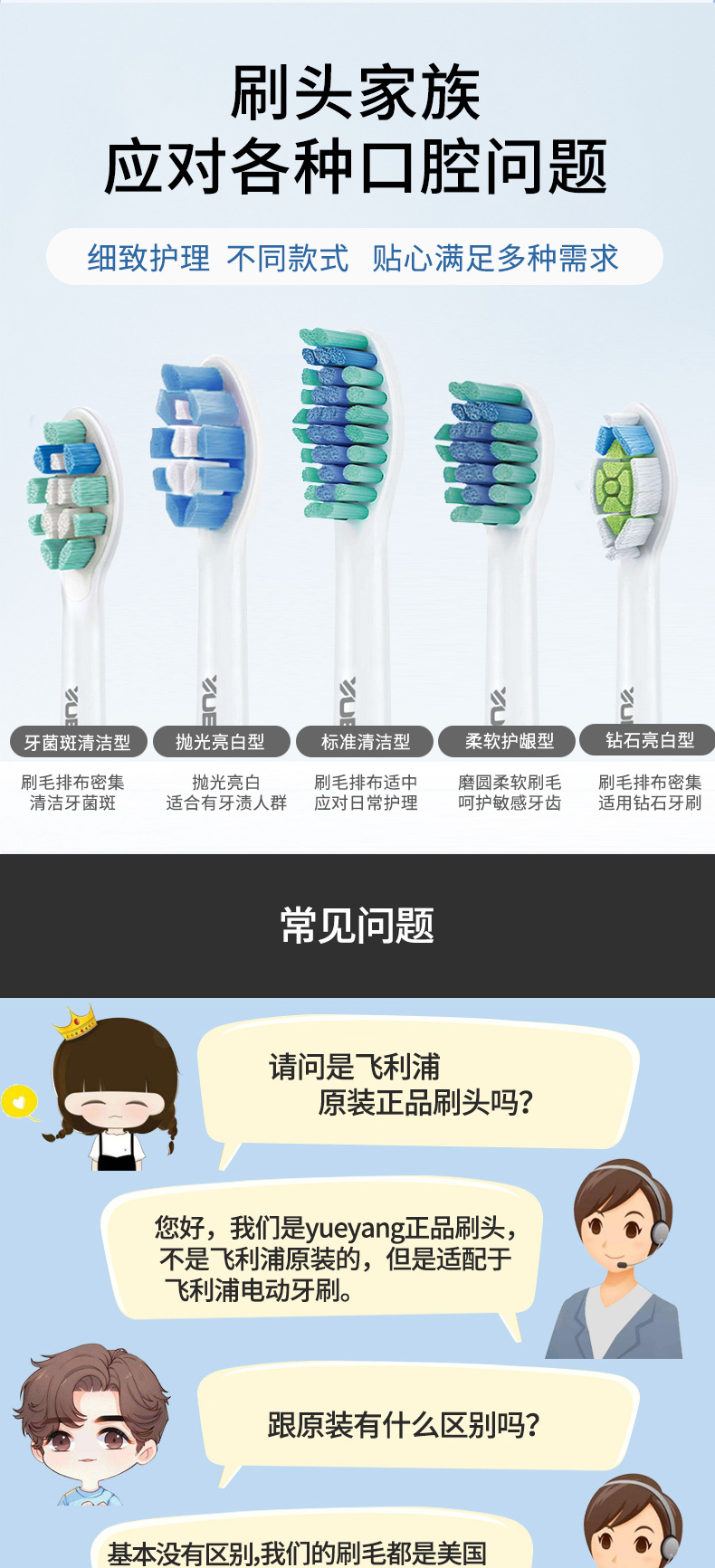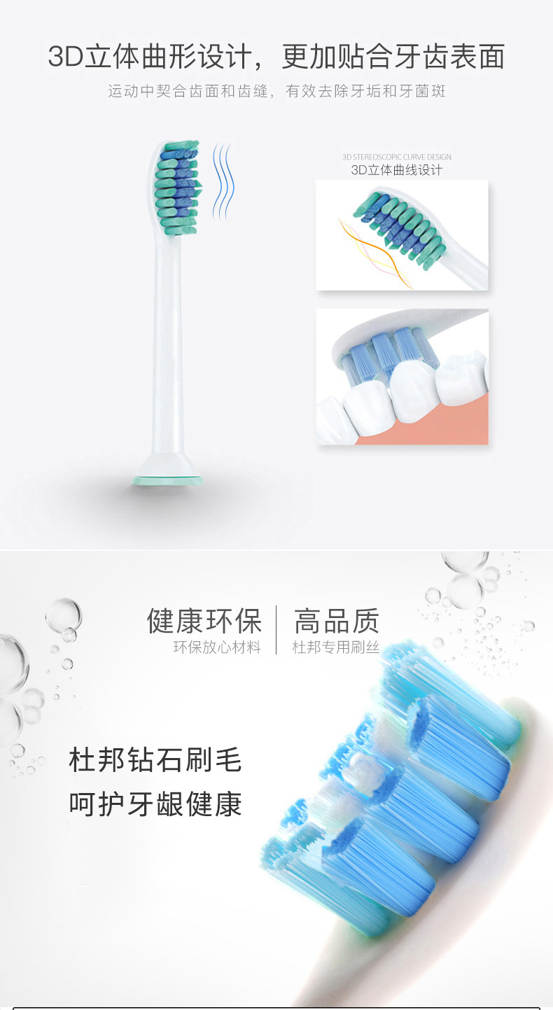 【买二送一】适用于飞利浦电动牙刷HX3/6/9全系列通用,一款有颜值的牙刷头,精致优选刷毛,舒适质感保护牙龈,独立包装,干净卫生。