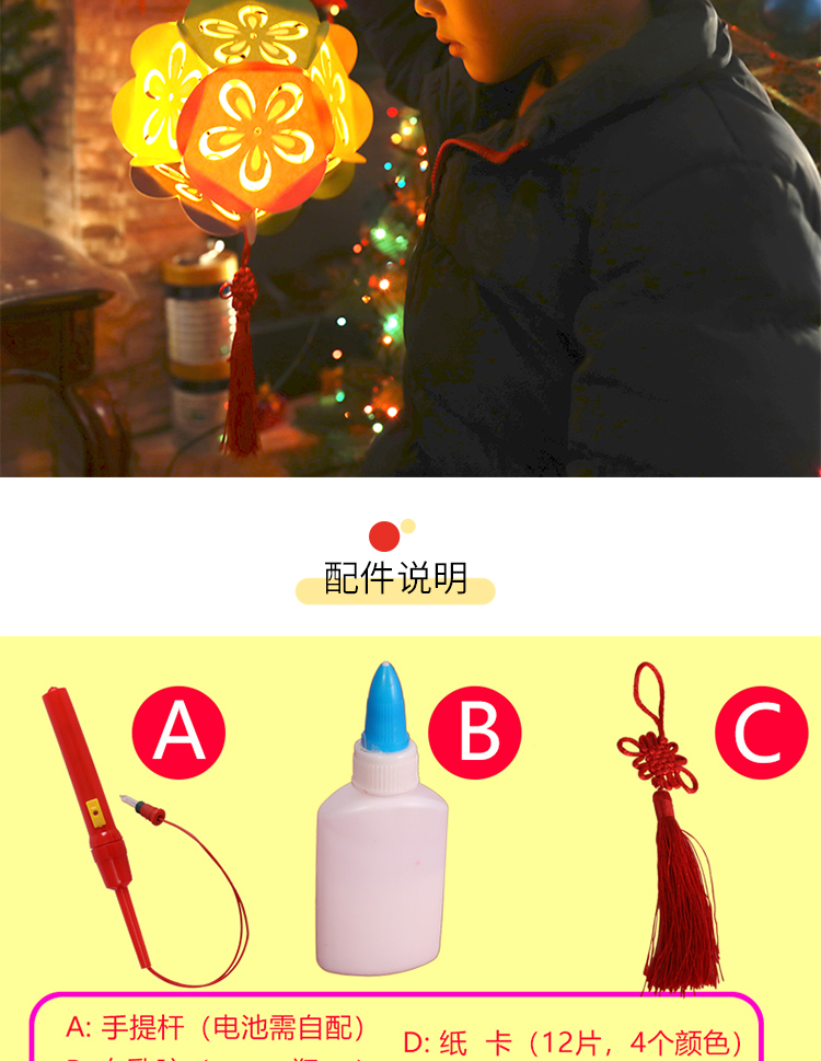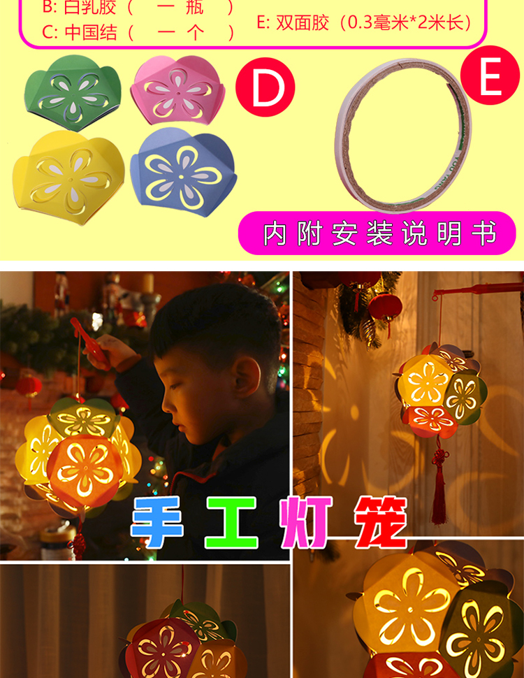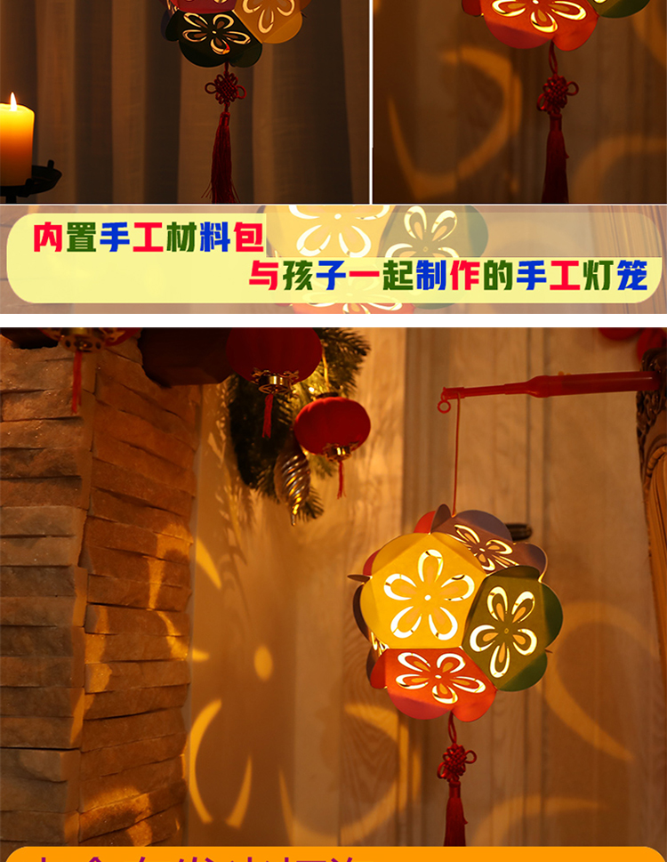 DIY手提灯笼,色彩鲜艳、健康无害、造型优美,让孩子手眼协调、身手敏捷,从而提升孩子的全脑智能开发!
