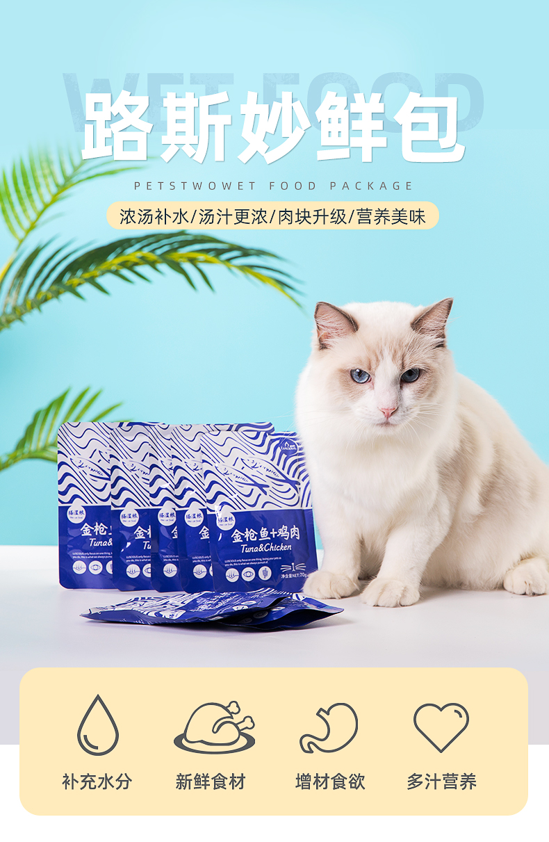 【拍2份30元发24包】路斯品牌鲜封包,浓汤补水,可当主食食用,征服猫主子味蕾的同时补充水分,独立小包装,方便携带,采用好食材,鸡肉、牛肉、金枪鱼,多种口味可选。