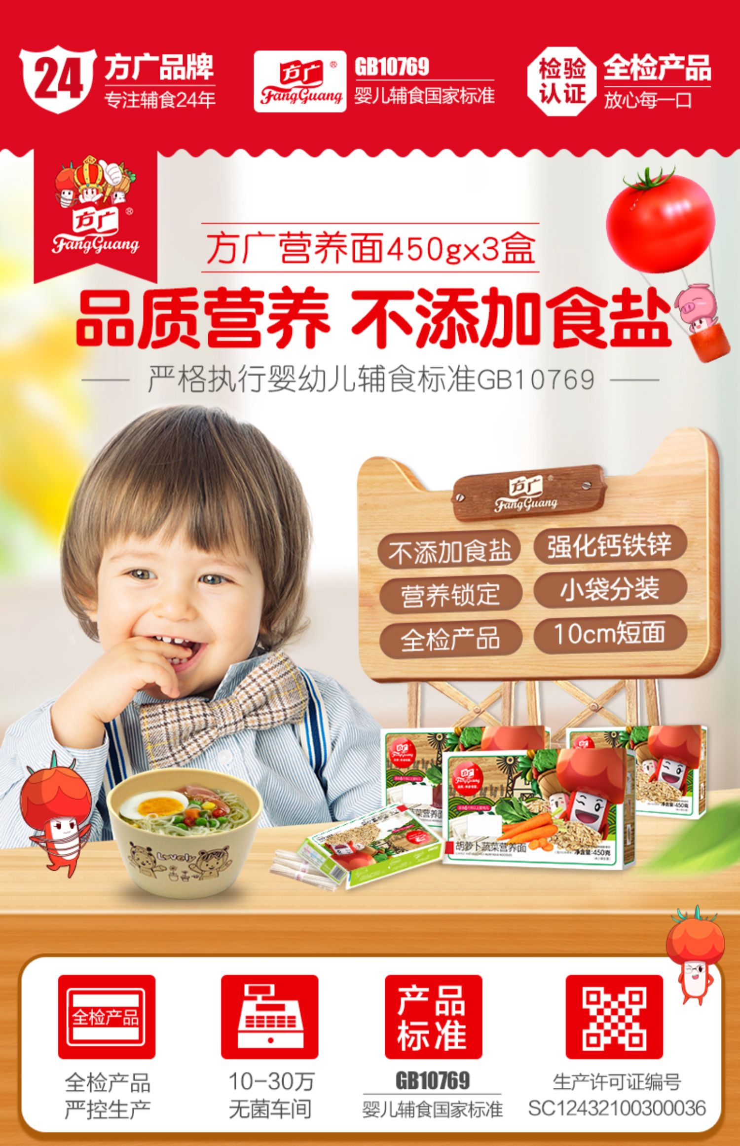 【赠运费险】线下孩子王1盒29.5,咱3盒仅48.8!24年大牌,方广面条!不添加食盐和香精,放心吃~优质小麦麦芯粉,好煮易熟不粘锅,入口Q弹劲道,营养又美味,宝宝超爱吃!