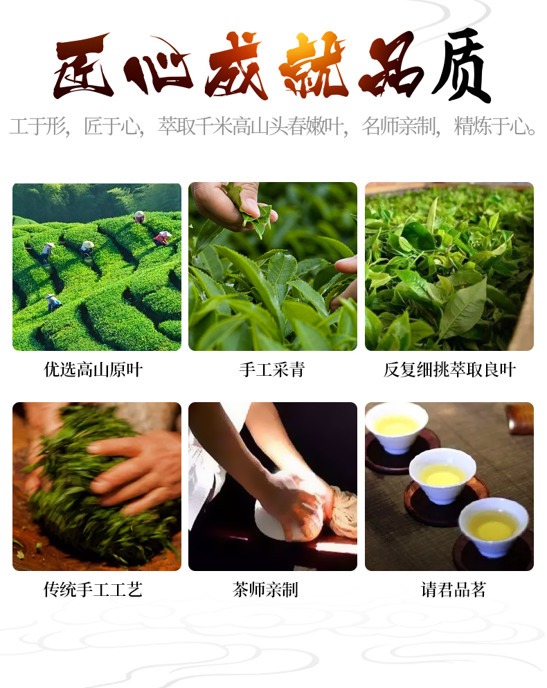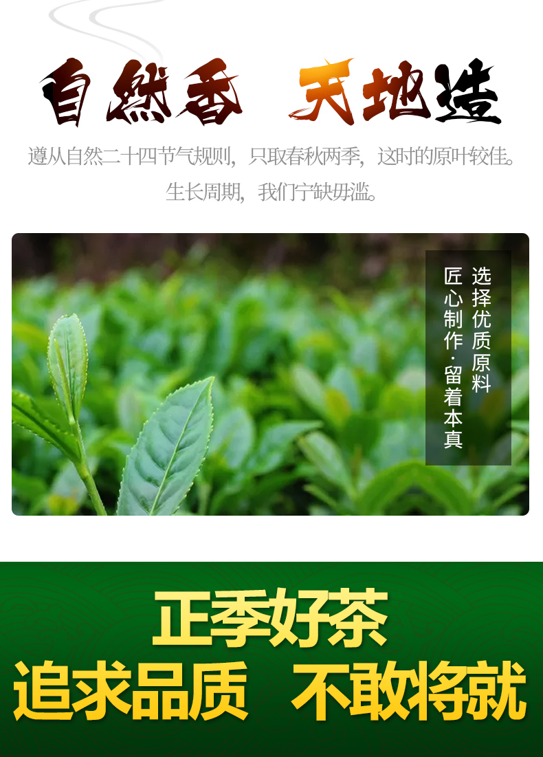 醇厚甘鲜,采用古法制作,口感由制茶师傅调配,以保留香气为主,初制阶段清火烘焙。茶汤黄绿明亮,散发悠悠茶香,伸出舌头,心平气和地感受下那种被温润缠绕的感觉