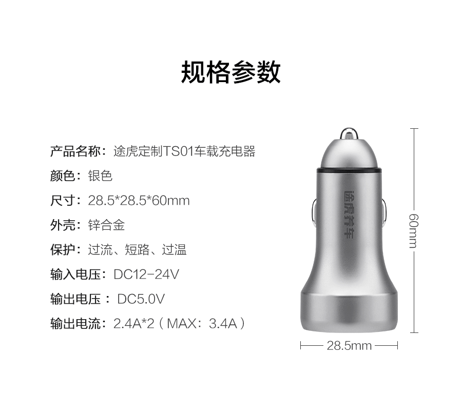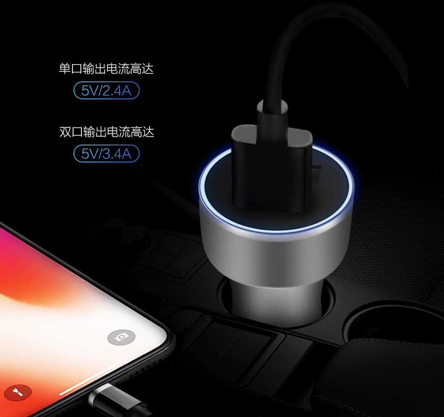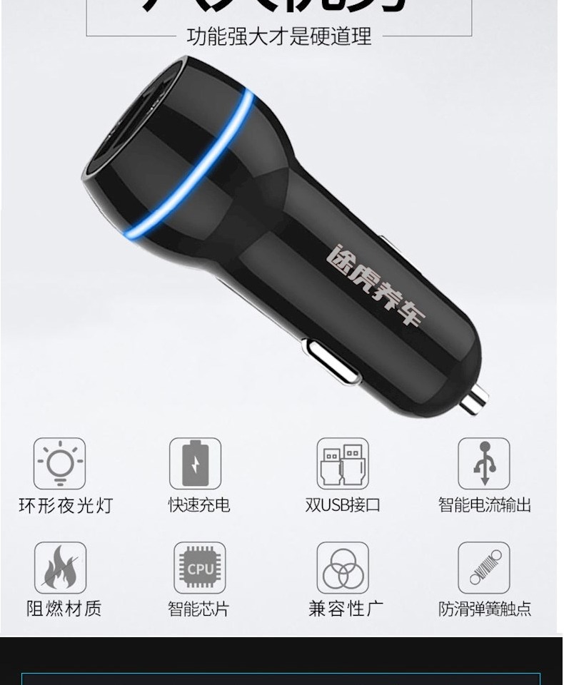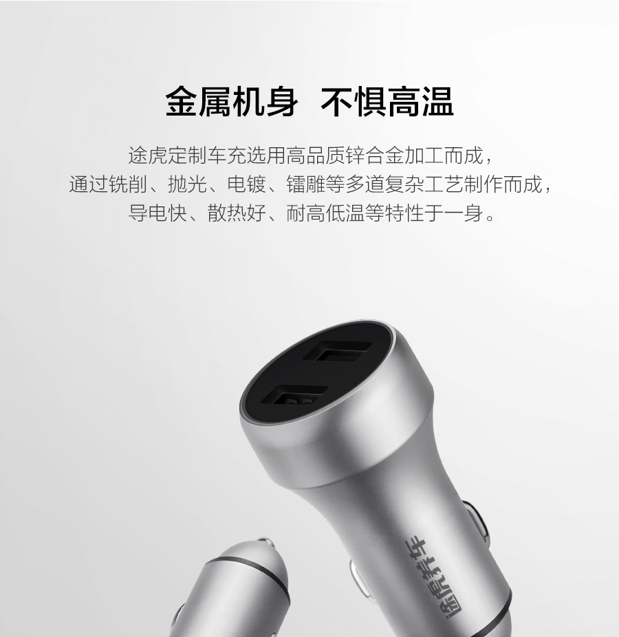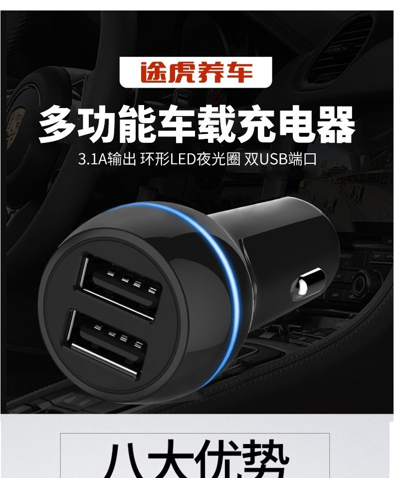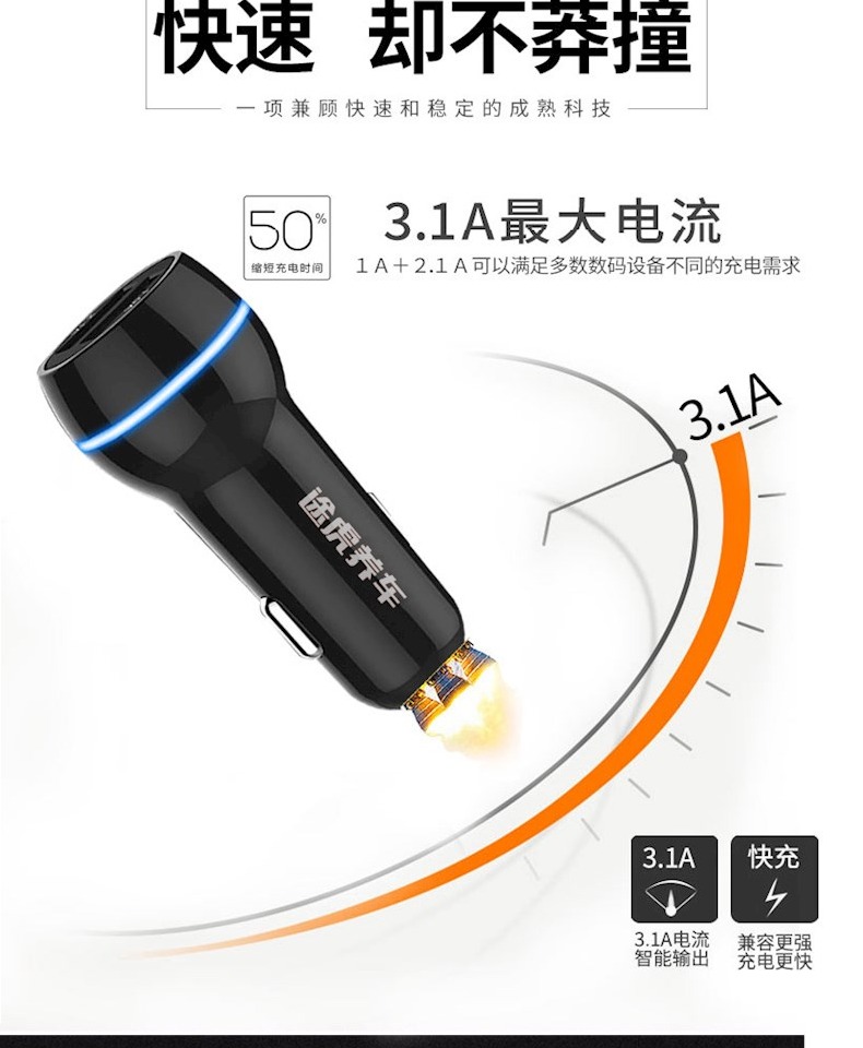 【途虎定制,正品保证!】科技金属质感,3.1A输出,LED夜光圈,小巧便捷,耐高温,抗阻燃,快速充电,智能芯片,安全可靠,用质感征服品味!