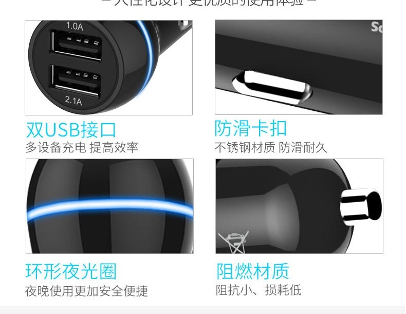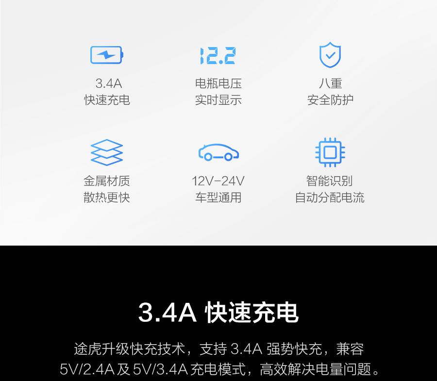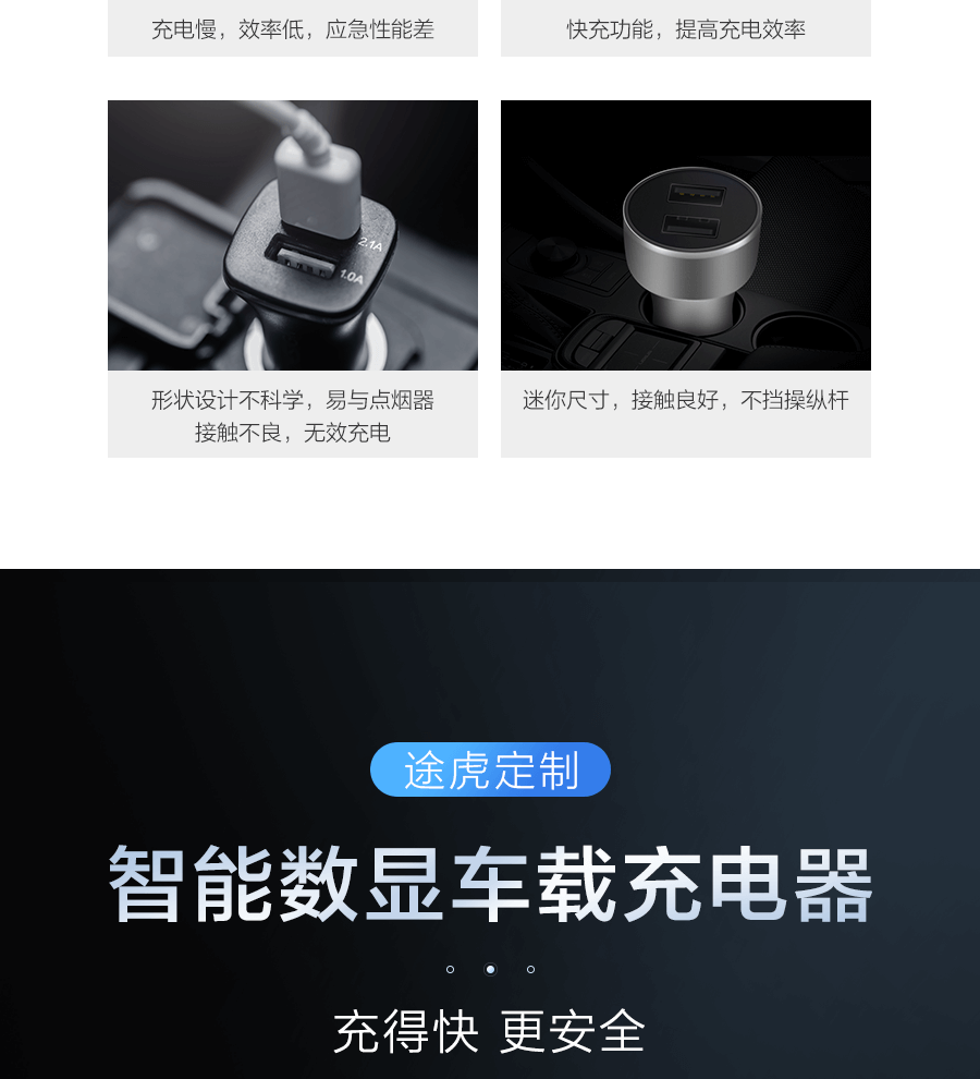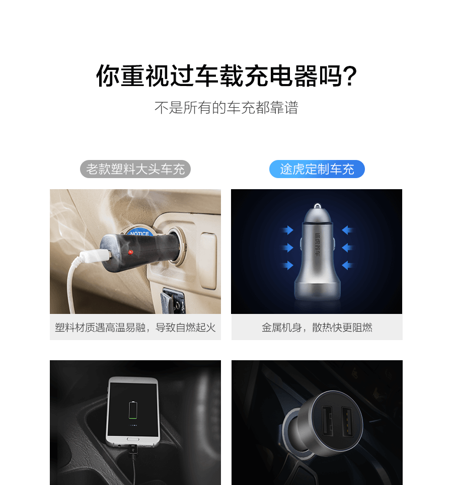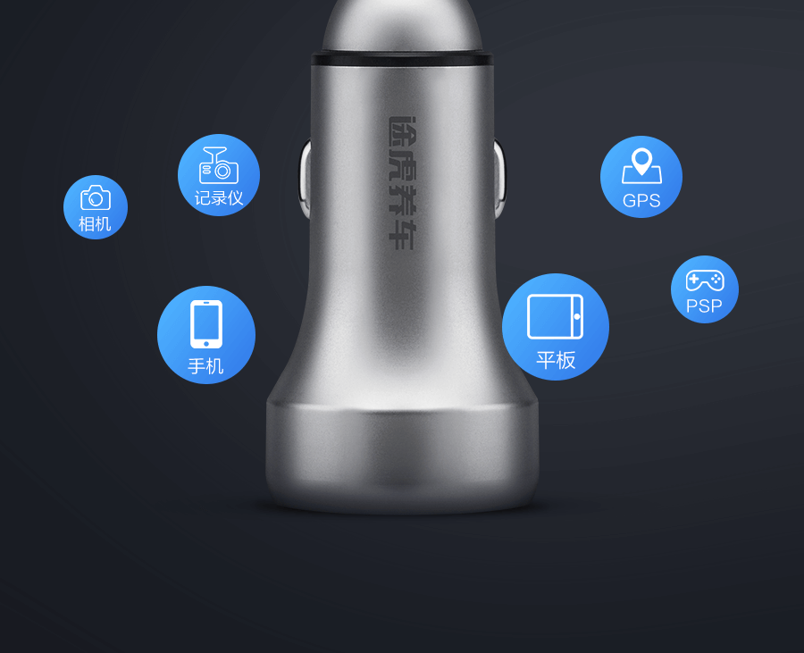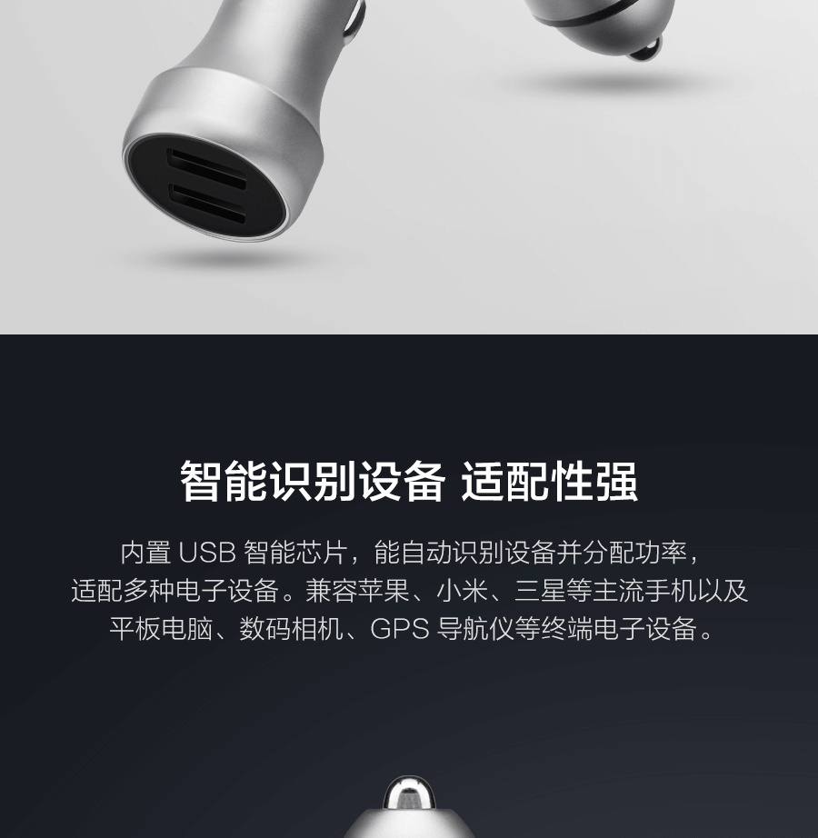 【途虎定制,正品保证!】科技金属质感,3.1A输出,LED夜光圈,小巧便捷,耐高温,抗阻燃,快速充电,智能芯片,安全可靠,用质感征服品味!