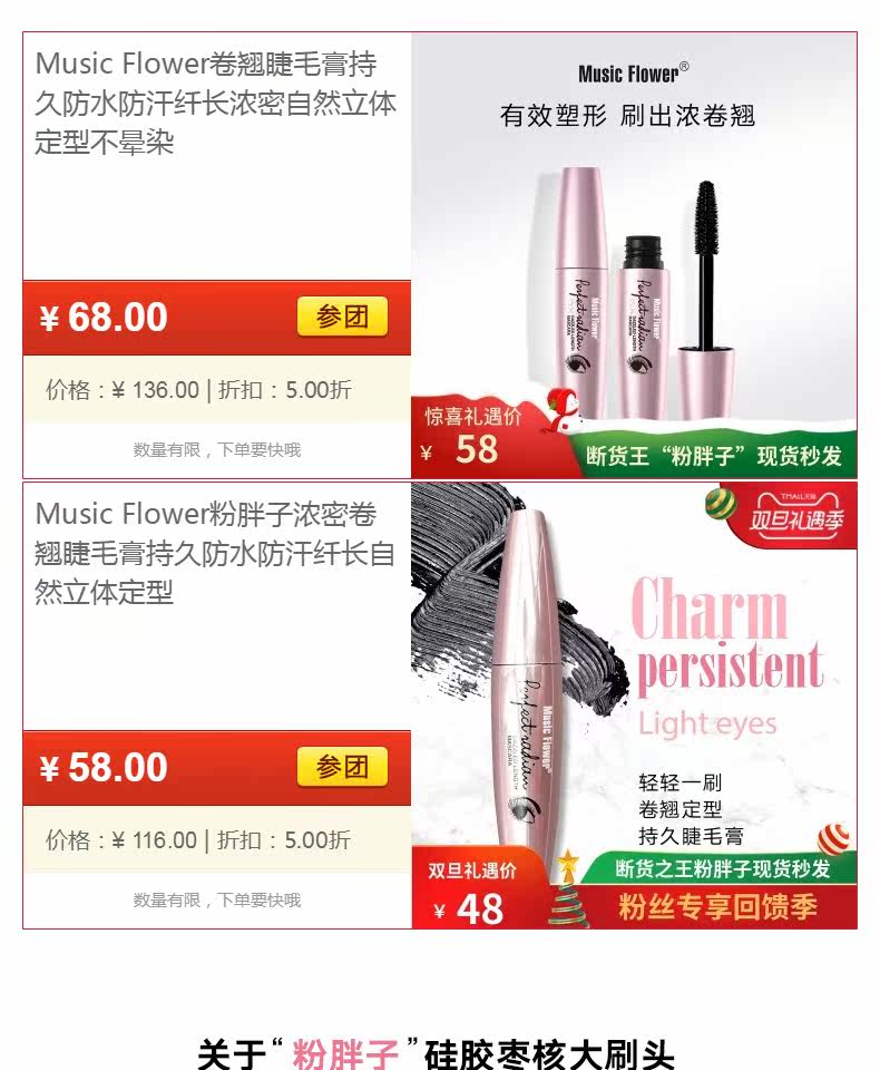 【全国包邮,过敏包退】MusicFlower睫毛膏,专柜正品,纤长防水,拒绝苍蝇腿,浓密丰盈,一秒卷翘大眼睛,美睫不晕染,温水卸妆【赠运费险】