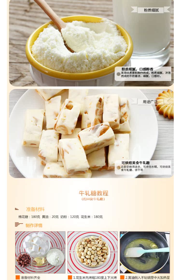 细腻绵密,轻松打发!奶味香浓,气味纷香诱人,用途广泛,味道纯正,多种用途,玩转烘焙,不含反式脂肪酸,孕妇宝宝可食用!