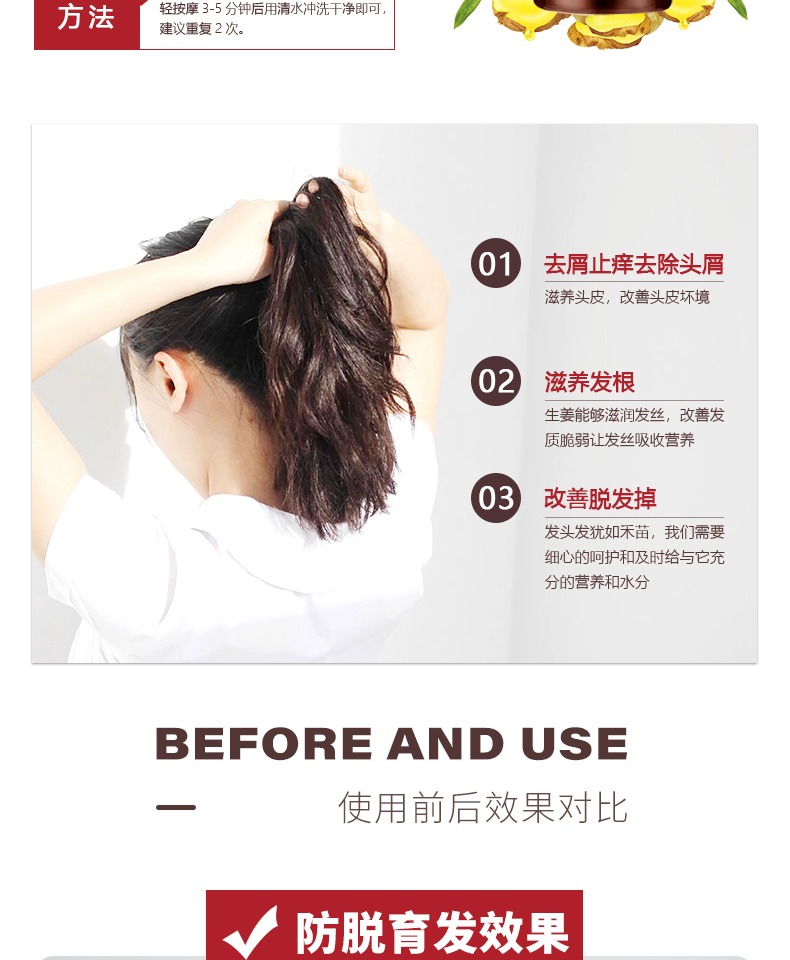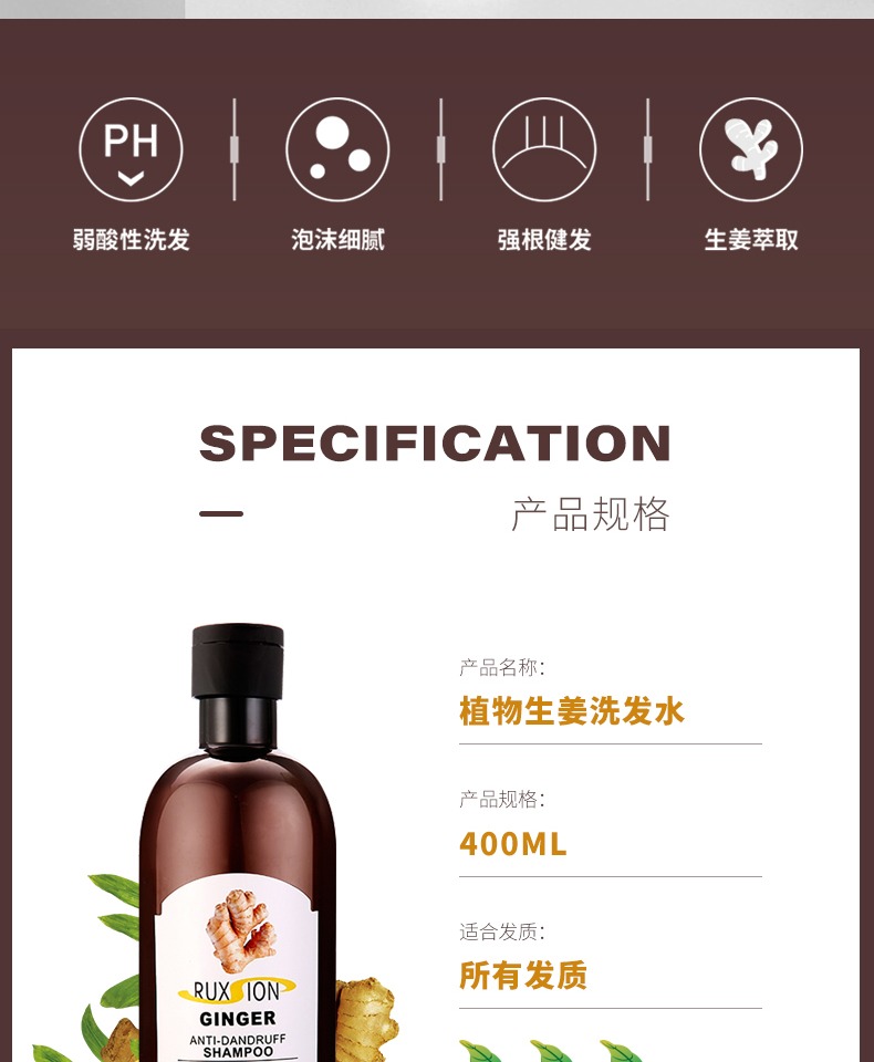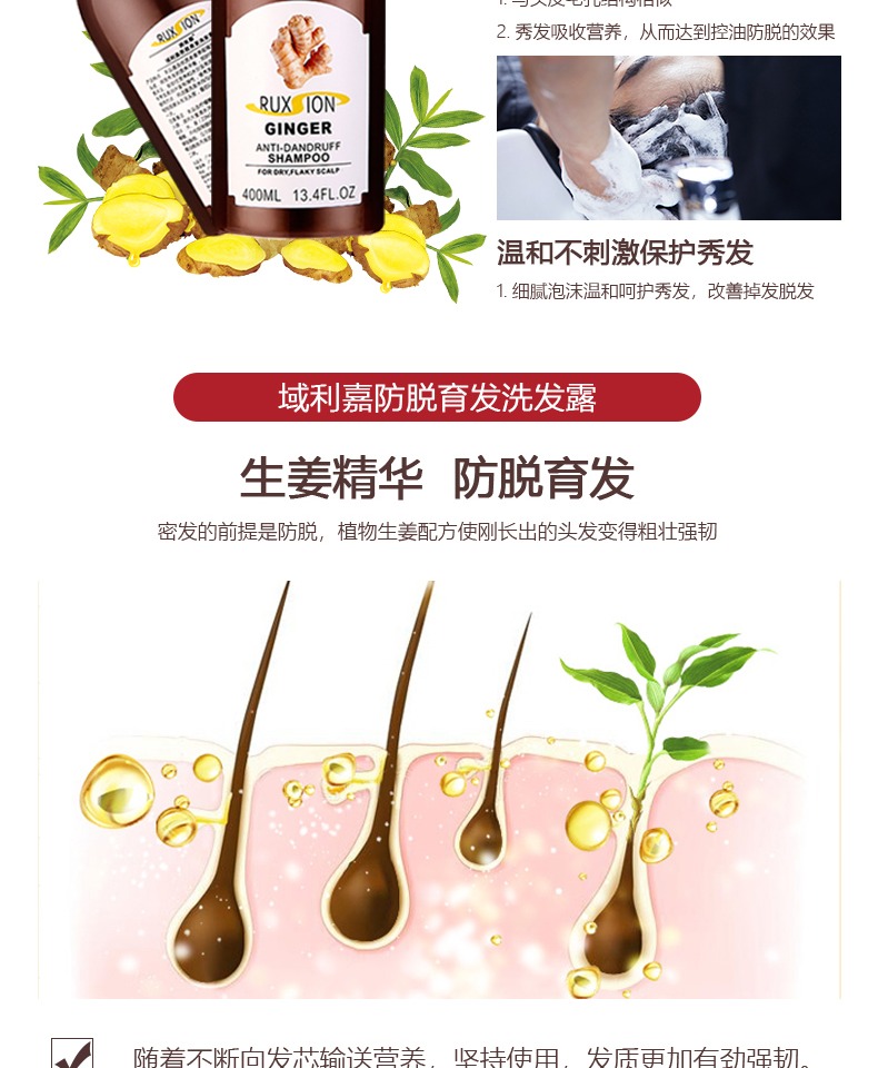 进口原料,含天然生姜精粹温和不刺激,清爽控油、柔顺亮泽、止痒去屑。强健发根,泡沫丰富细腻。适合任何发质,尤其染烫受损发丝、掉发,搞定“头”等大事!【赠运费险】