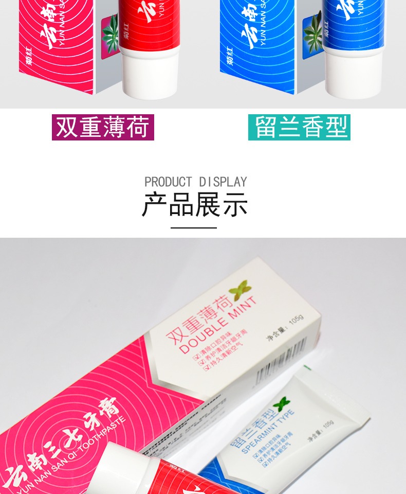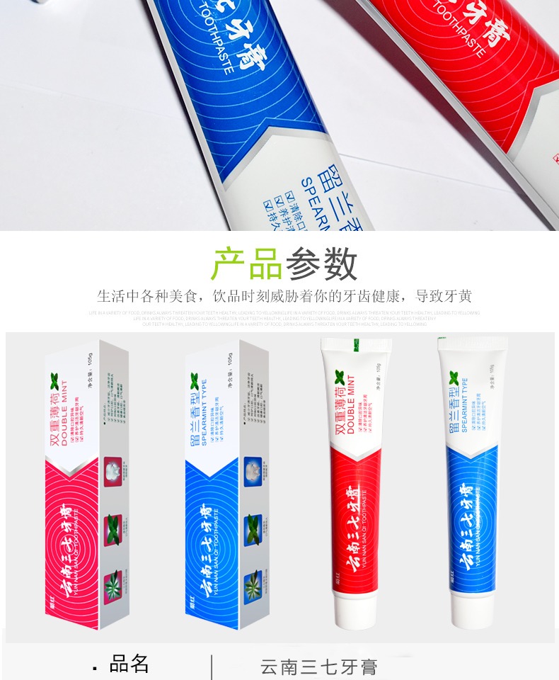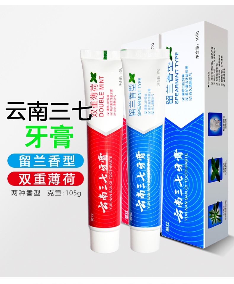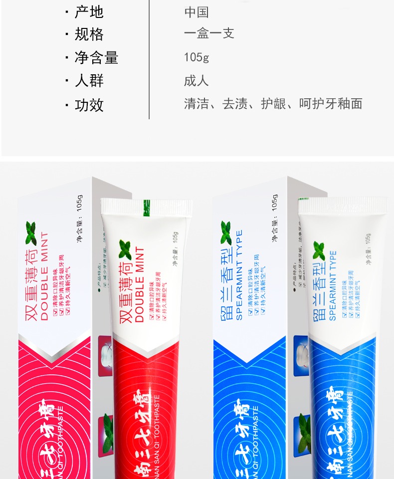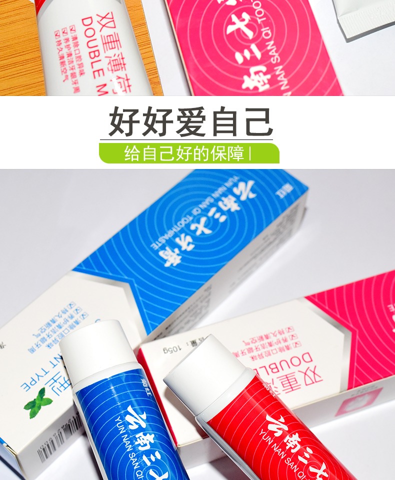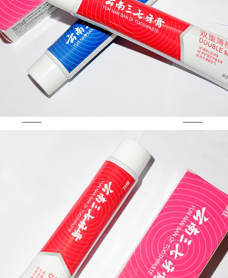 【超值210g*2支装!第2件4元!】双重薄荷/留兰香型,采用云南三七植物精华,有力强健牙龈,舒缓牙龈肿痛、出血等问题!大容量210g,大人小孩都可用,每天刷一刷,保持牙齿健康!~