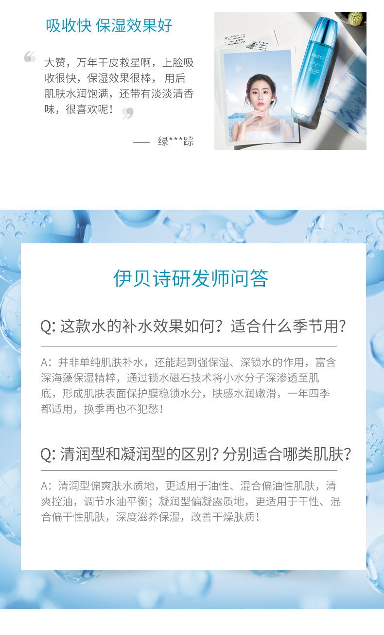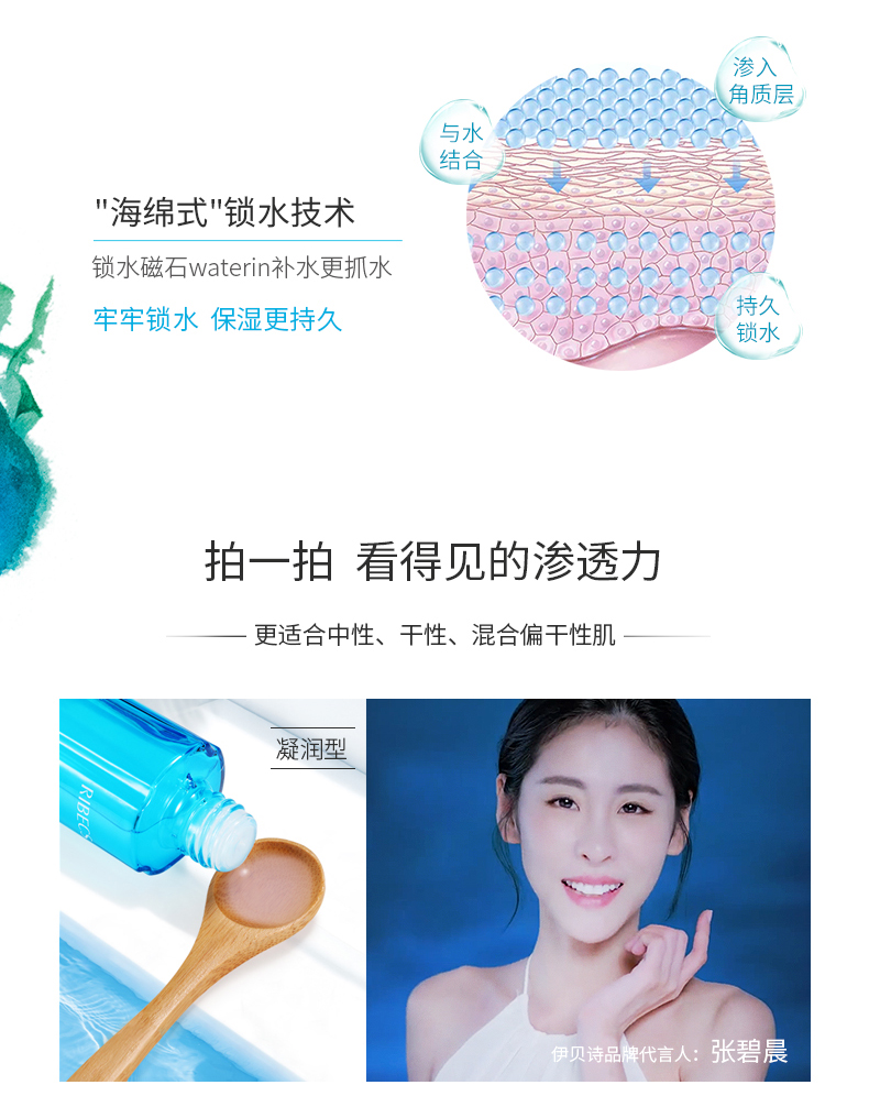 【张碧晨代言】【伊贝诗柔肤水】柔细肤质,软化因缺水而干燥,深度修护,补水润泽,补充全天充足水分,令肌肤柔嫩细滑