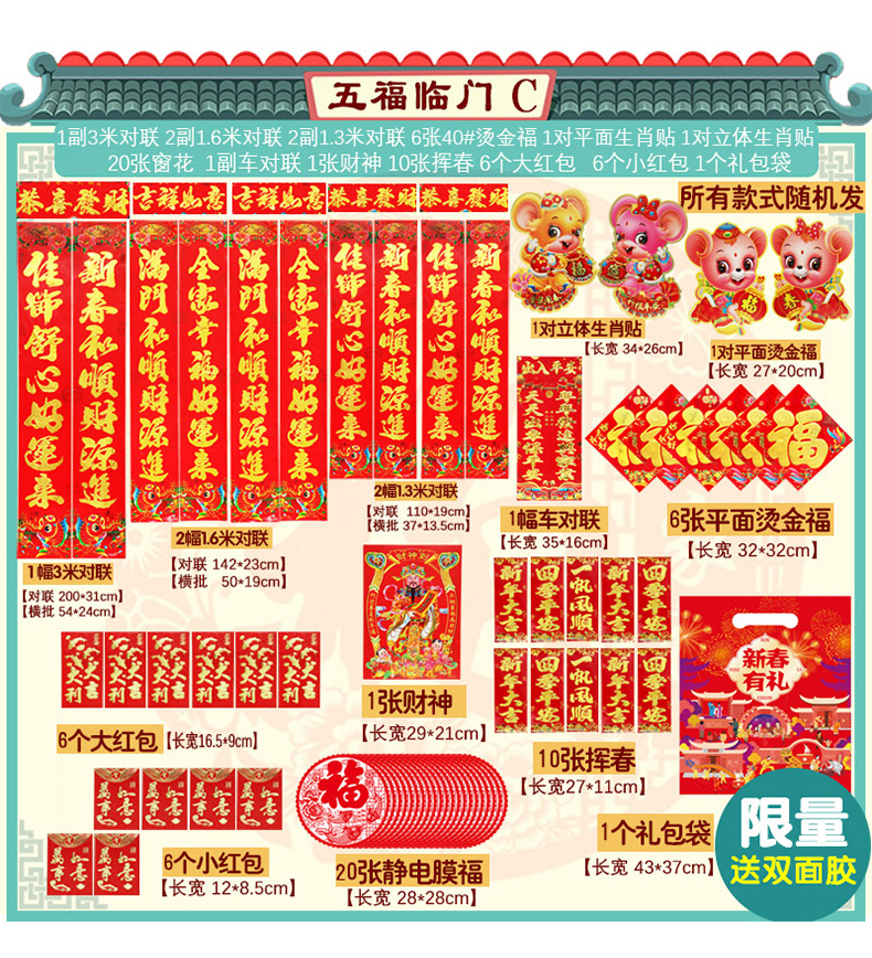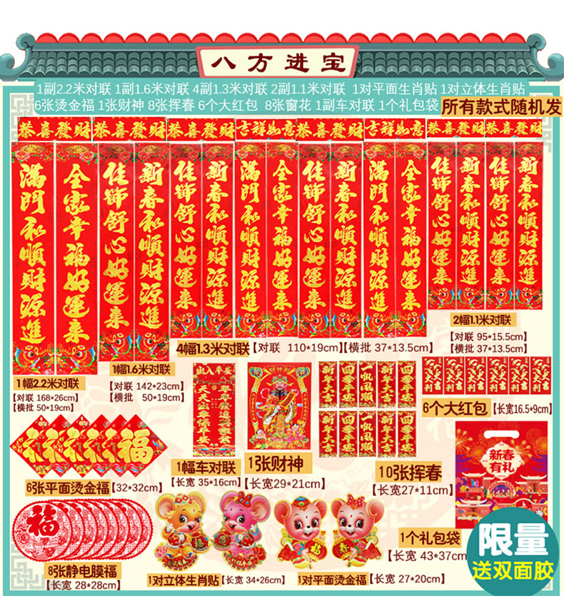 2020新年对联鼠年吉祥春联大礼包,快囤起春节大对联礼包,精美烫金,旺上加贵,安宅旺运一整年,福气提前带回家,红红火火过新年!