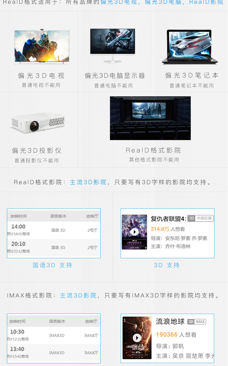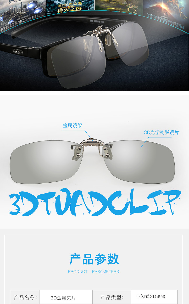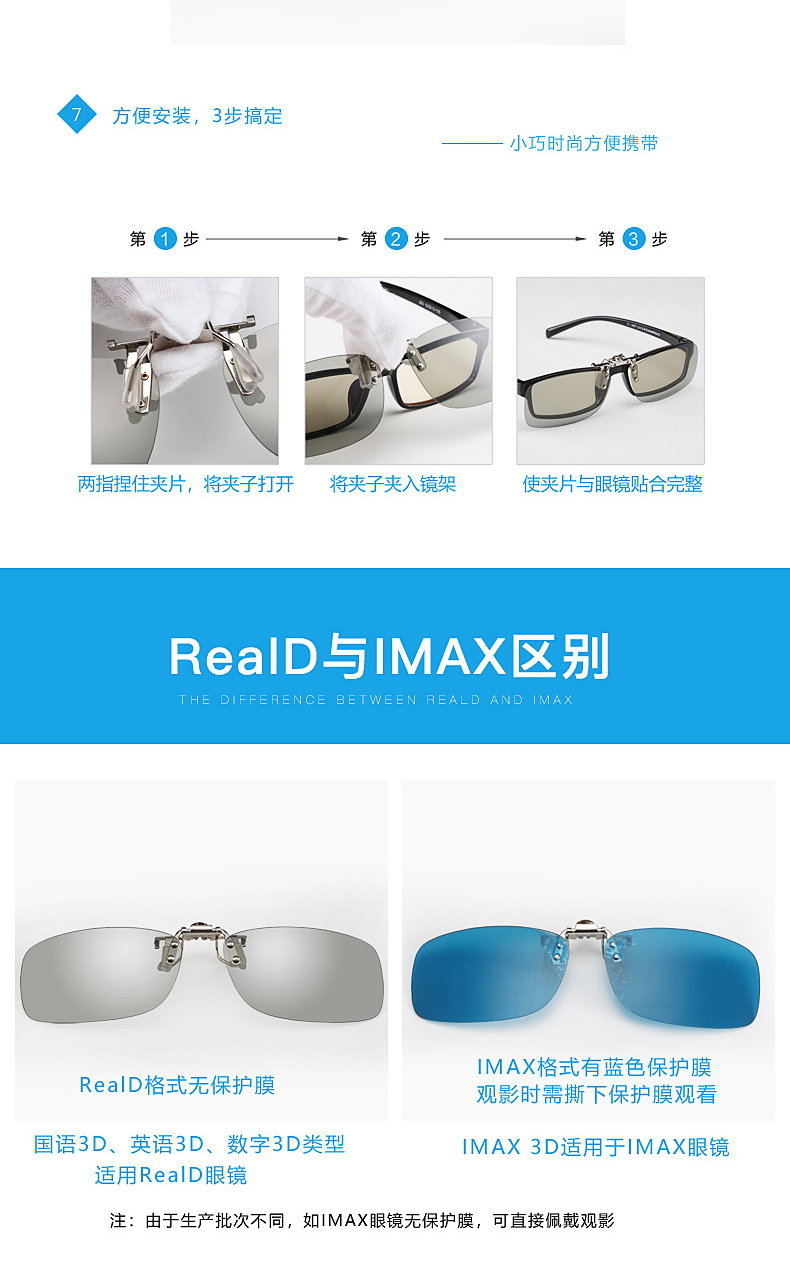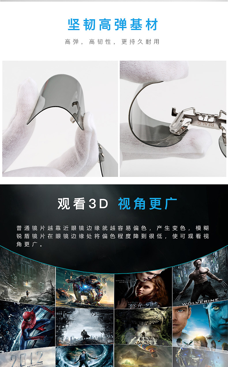 3d眼镜夹片偏光电影院专用