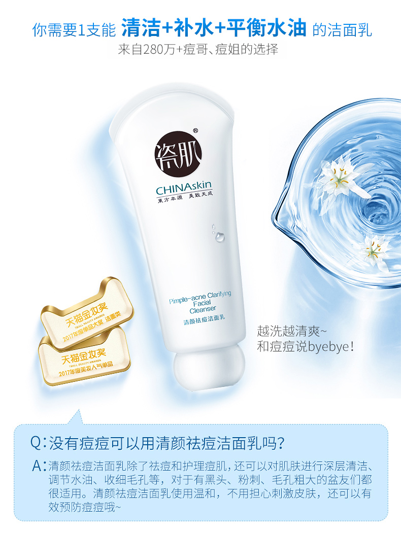 药妆大牌,天猫金妆奖人气单品,热销280万件,超过珠峰的高度25倍,深层清洁,控油祛痘,补水保湿,一支专治痘痘的洗面奶,男女通用!【赠运费险】