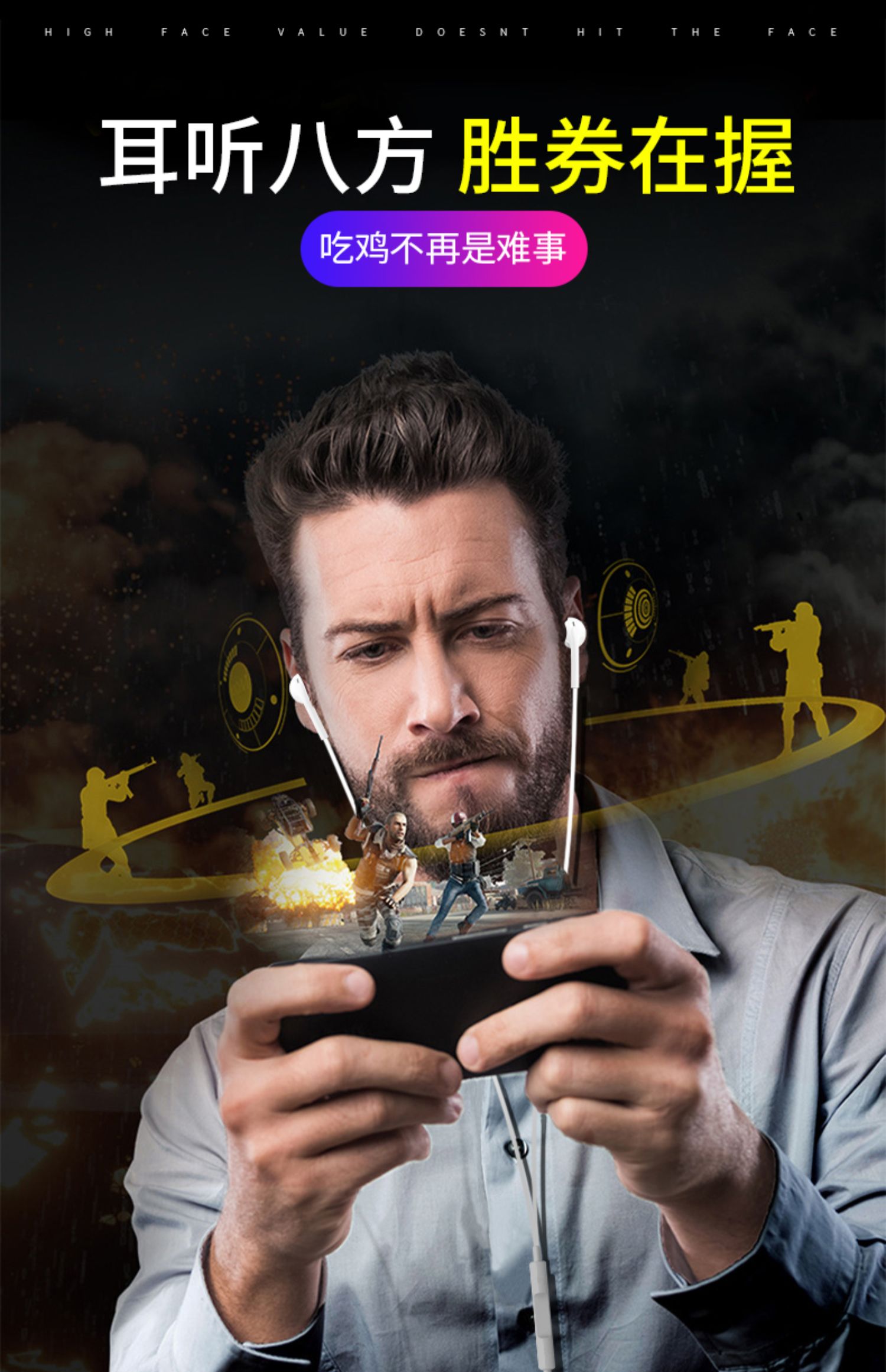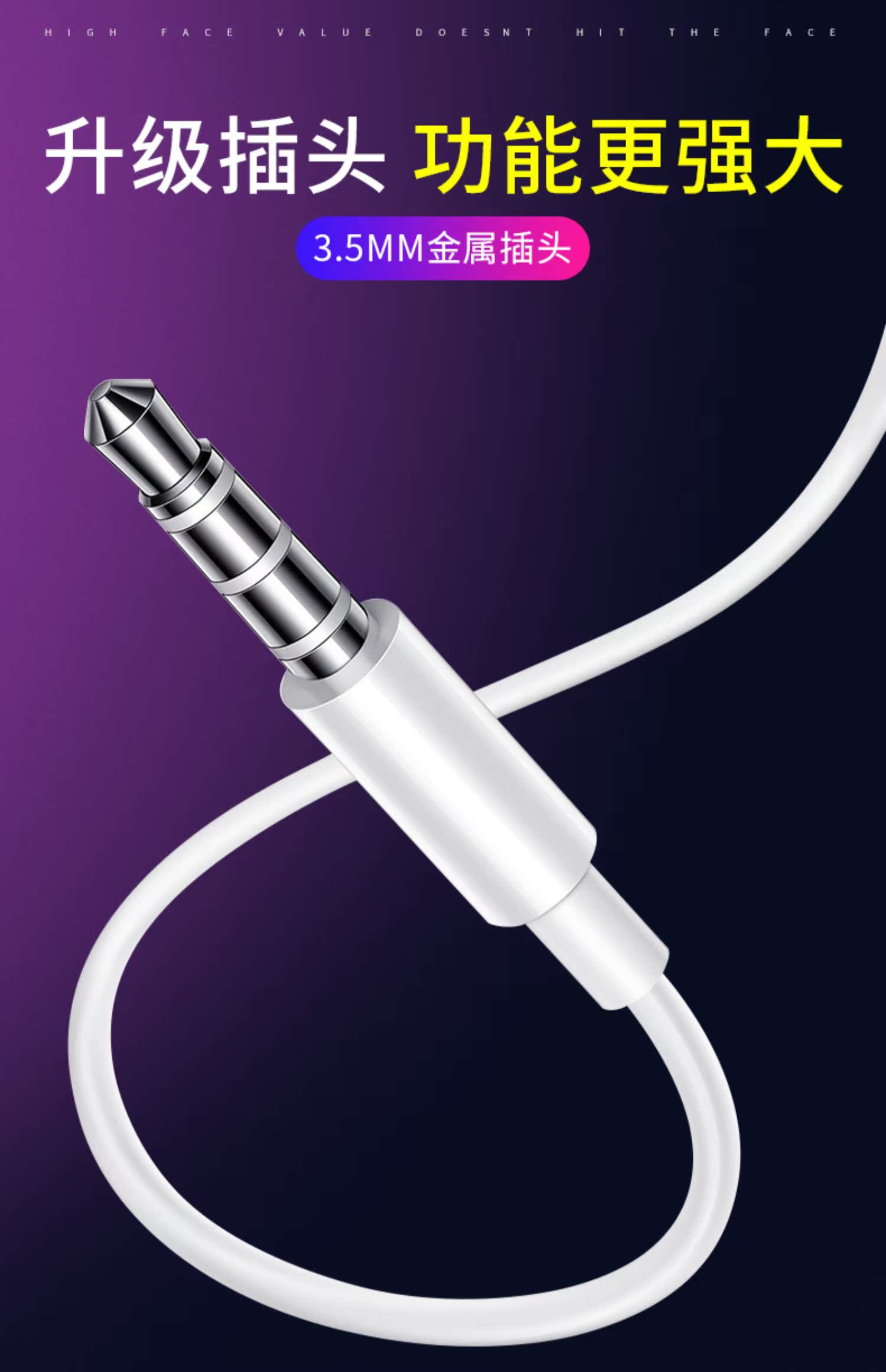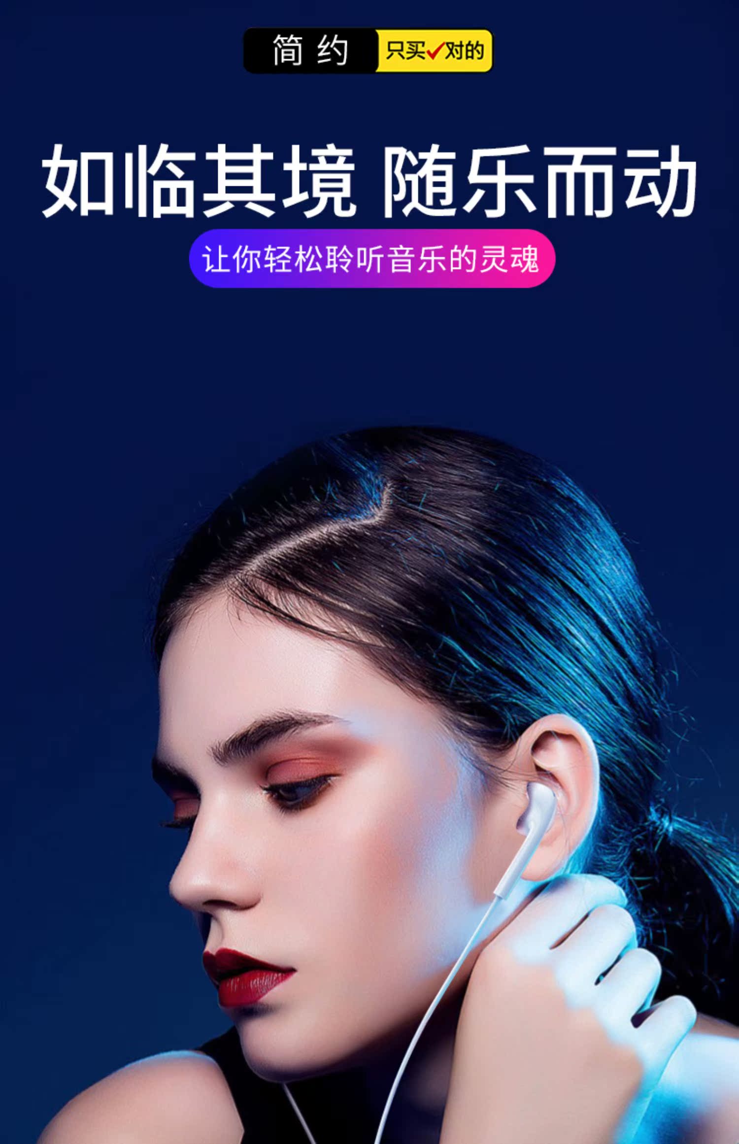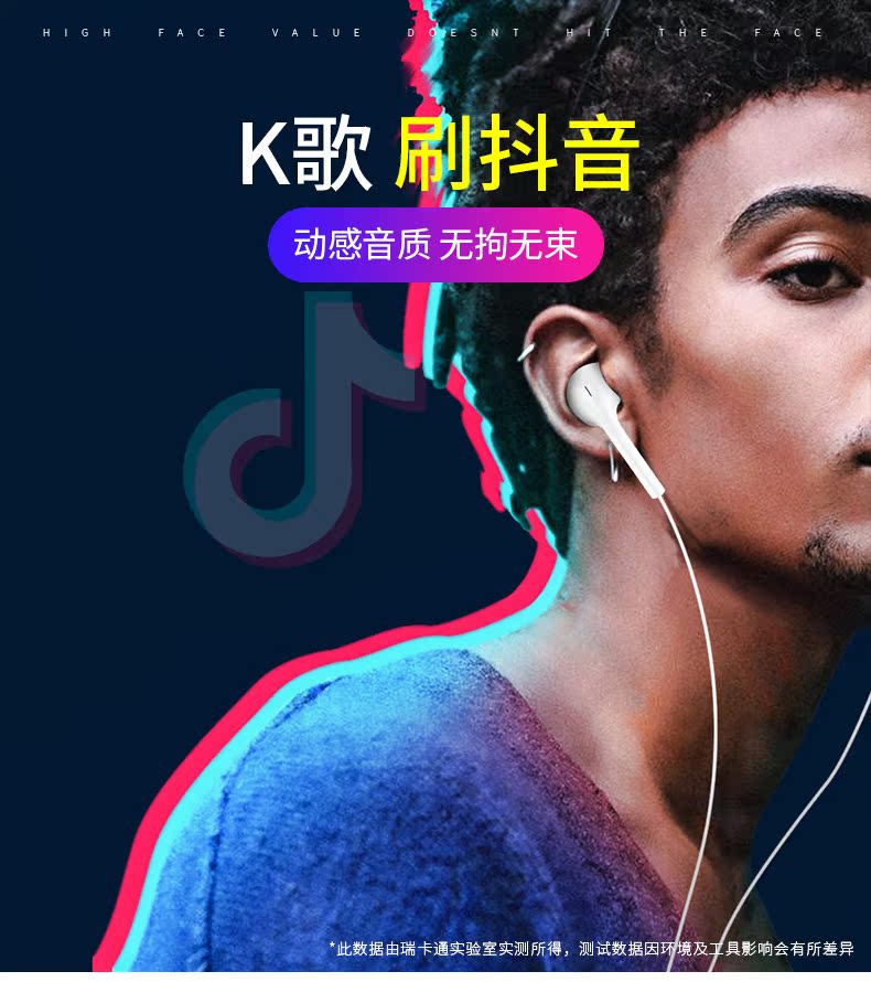 产品质量看的见,高清音质,佩戴舒适,防缠绕线材,让耳朵享受音乐体验,苹果安卓通用,好音乐配好耳机,一起动起来!