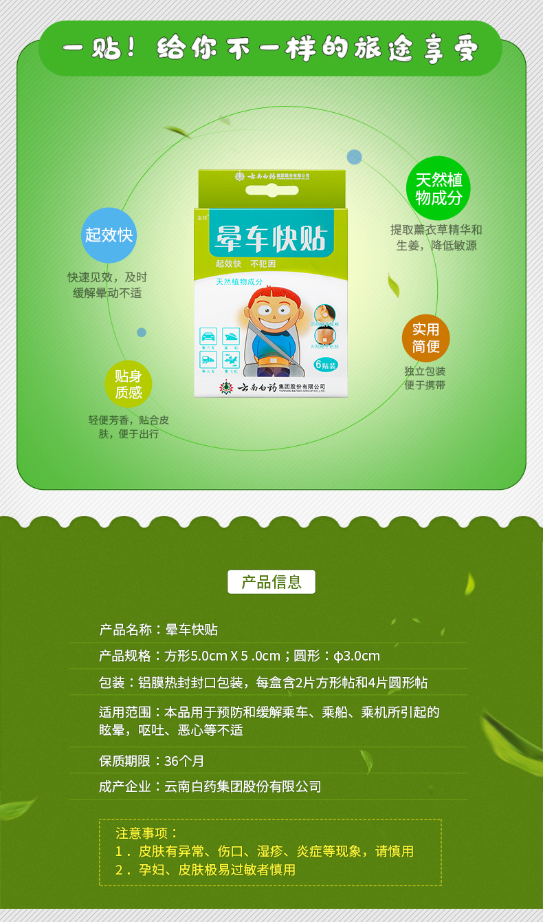 【云南白药】2盒泰邦晕车贴12贴