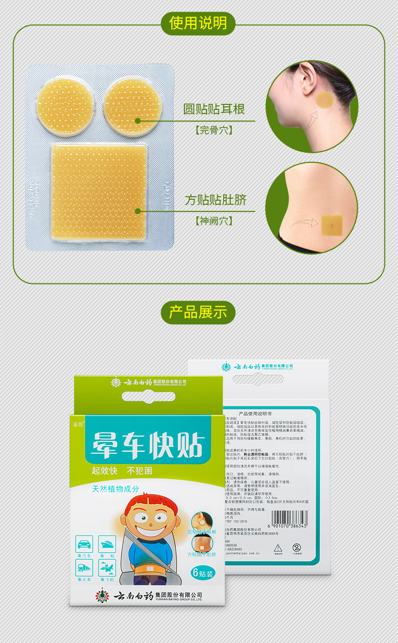 【6贴/盒,到手1件=2盒=12贴!】老人小孩都能用,即贴即用,粘贴持久不易掉,分别贴于耳根、大椎穴或者太阳穴能够快速缓解不适,超实用~