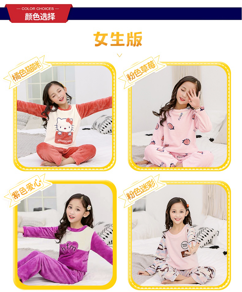 升级加厚珊瑚绒睡衣套装,选用独特保暖原料,亲肤柔软,透气舒适,环保安全放心,款式多尺码足,助力宝宝缤纷童年,每一天都健康快乐
