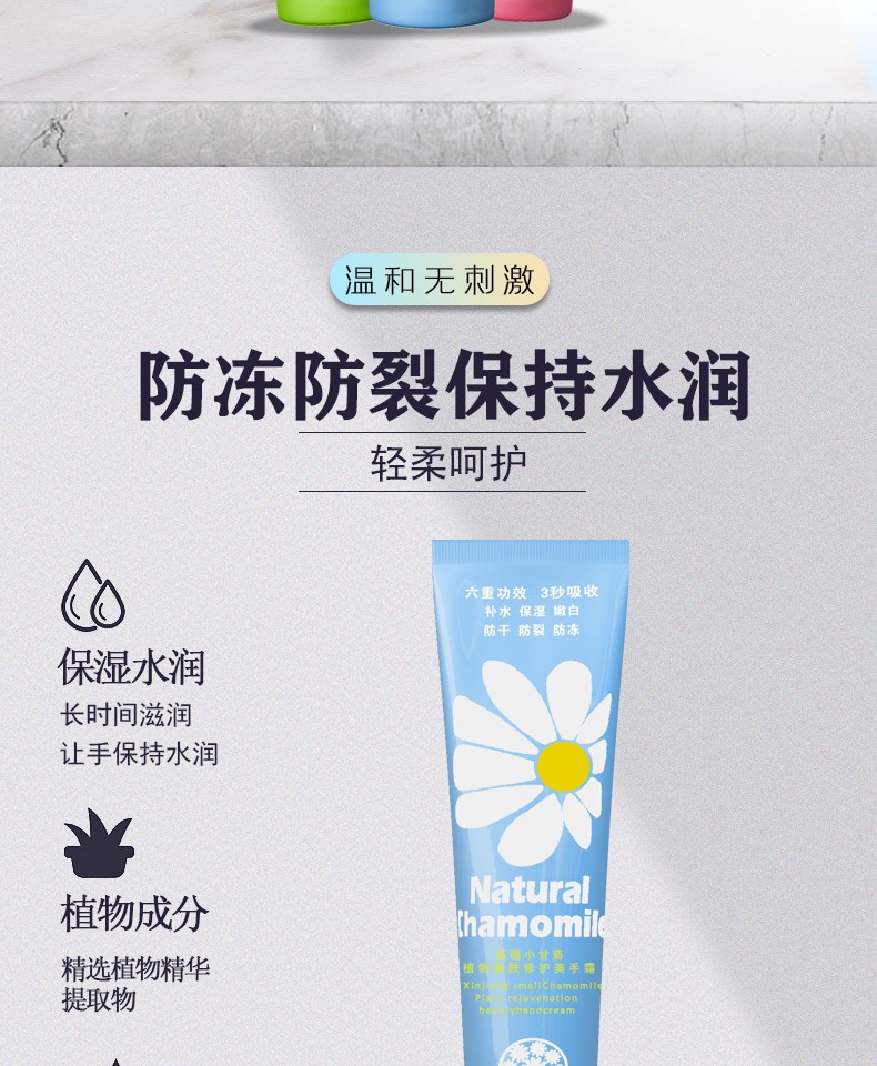 【3支9.9;6支到手15.9元】洋甘菊温和配方,防粗糙防干裂,深入美白滋养,淡化手纹!涂上3秒吸收,清爽不粘腻,让你拥有一双纤纤玉手