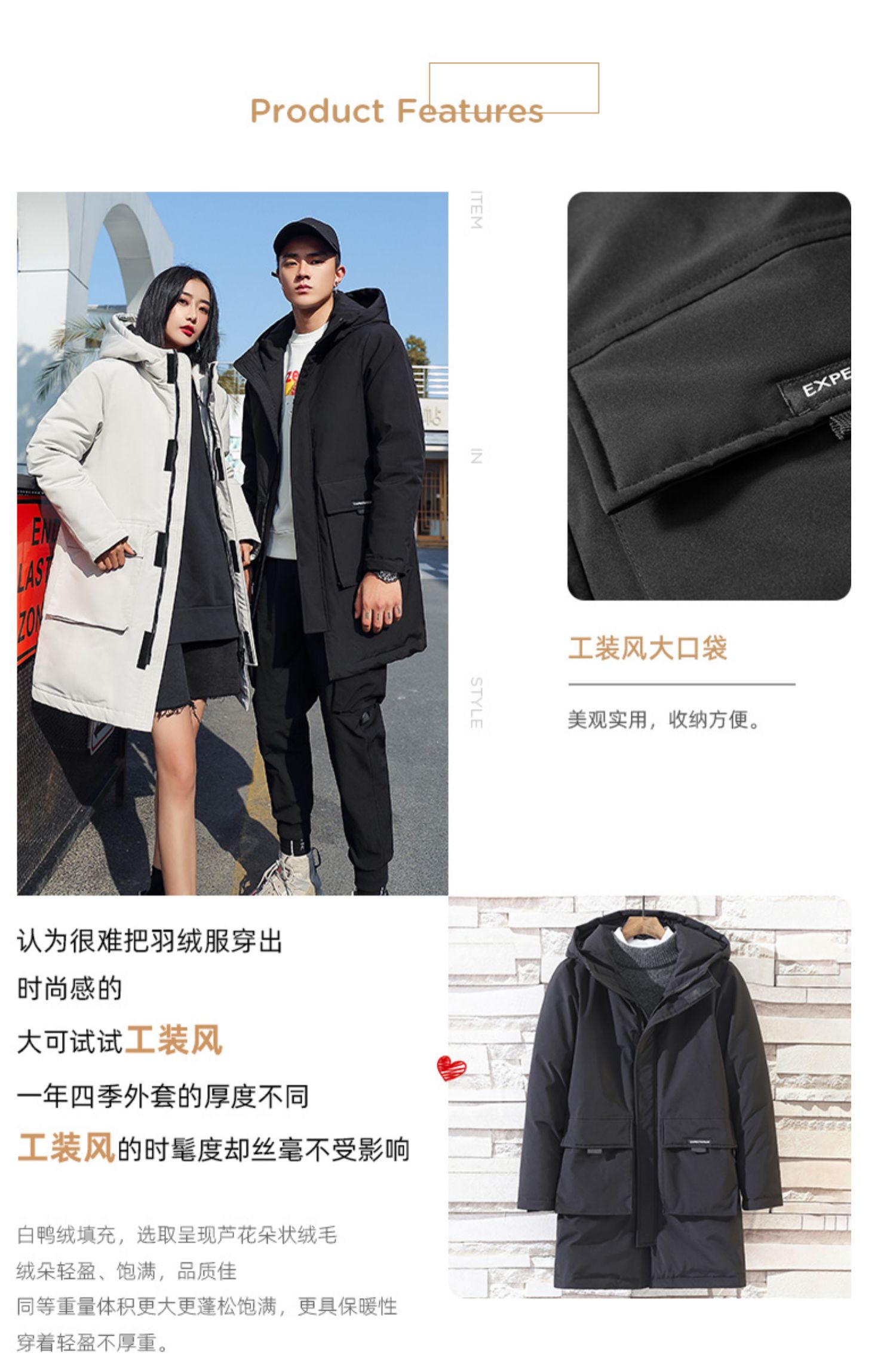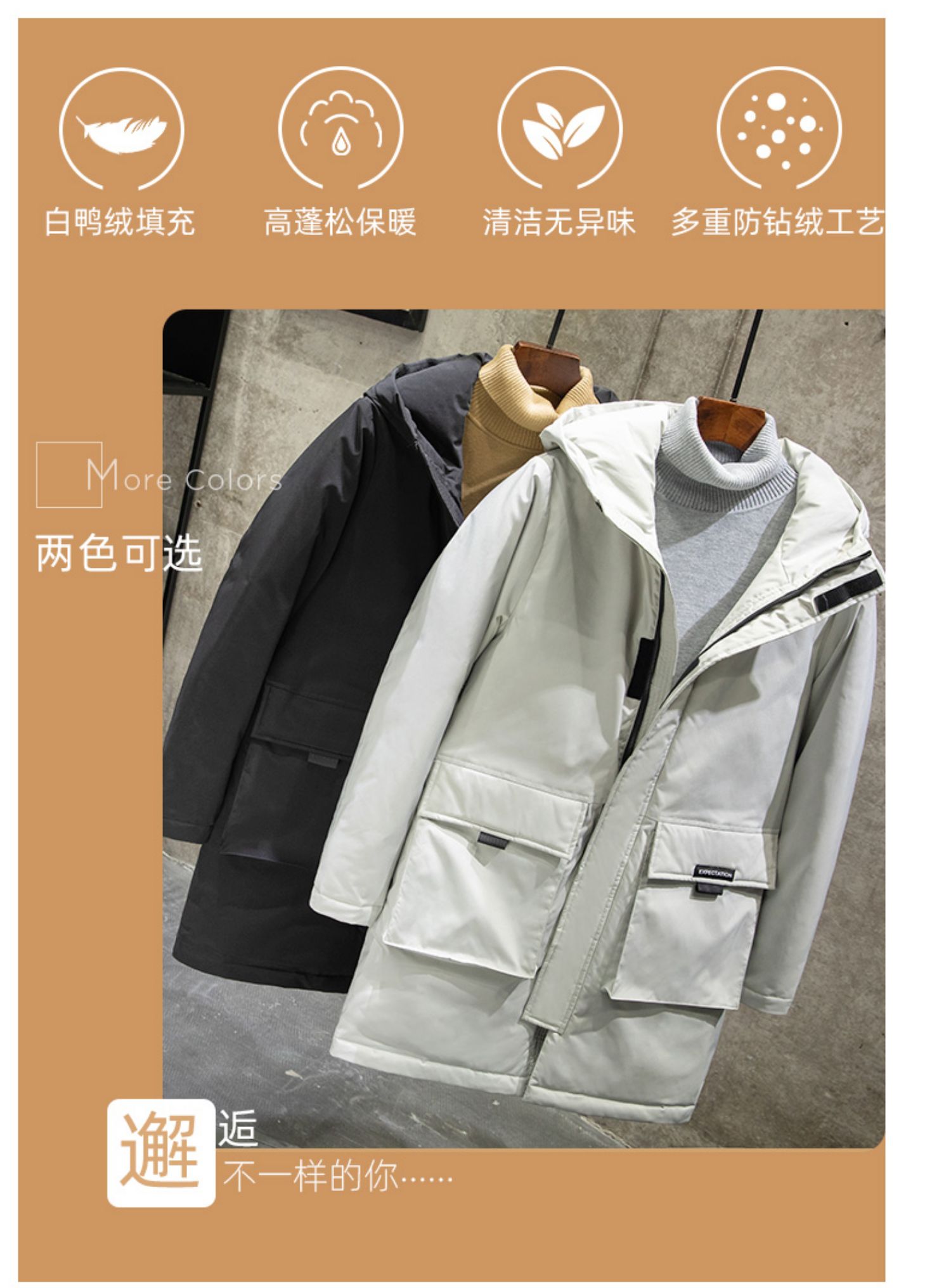 专柜同款1000多【尺码M-3XL】天猫旗舰店品牌直营!90%白鸭绒填充,轻盈饱满,防风保暖不臃肿,工装风设计,时尚减龄又百搭,2色可选,不挑身材不挑年龄,谁穿谁帅气,潮男不二之选【赠运费险】