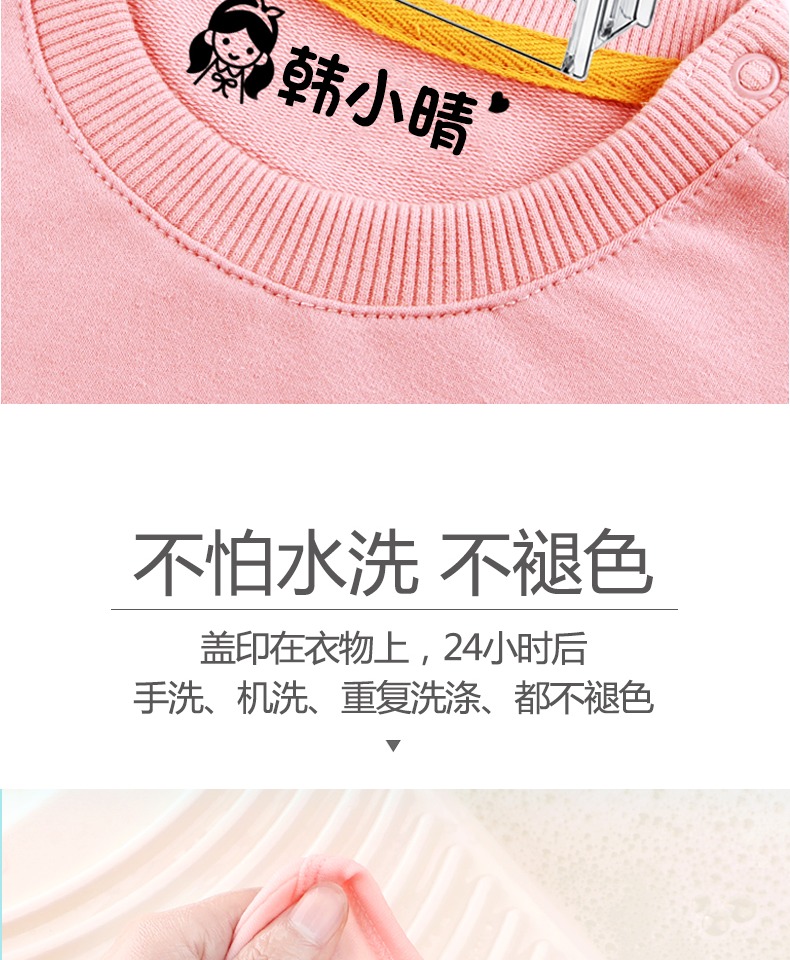 推荐宝宝专属印章,轻松解决用品不混淆,告别裁缝刺绣,轻轻一按,方便快捷,24小时,水洗不易褪色,衣物、课本都能使用~
