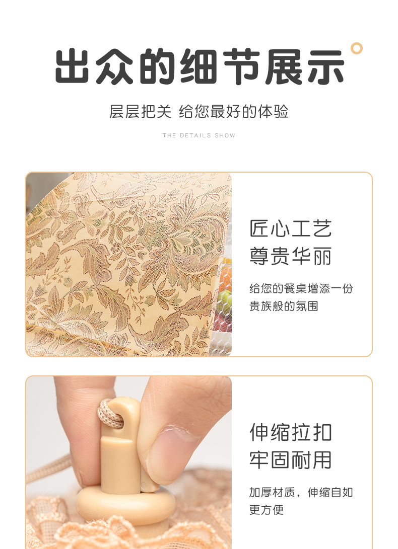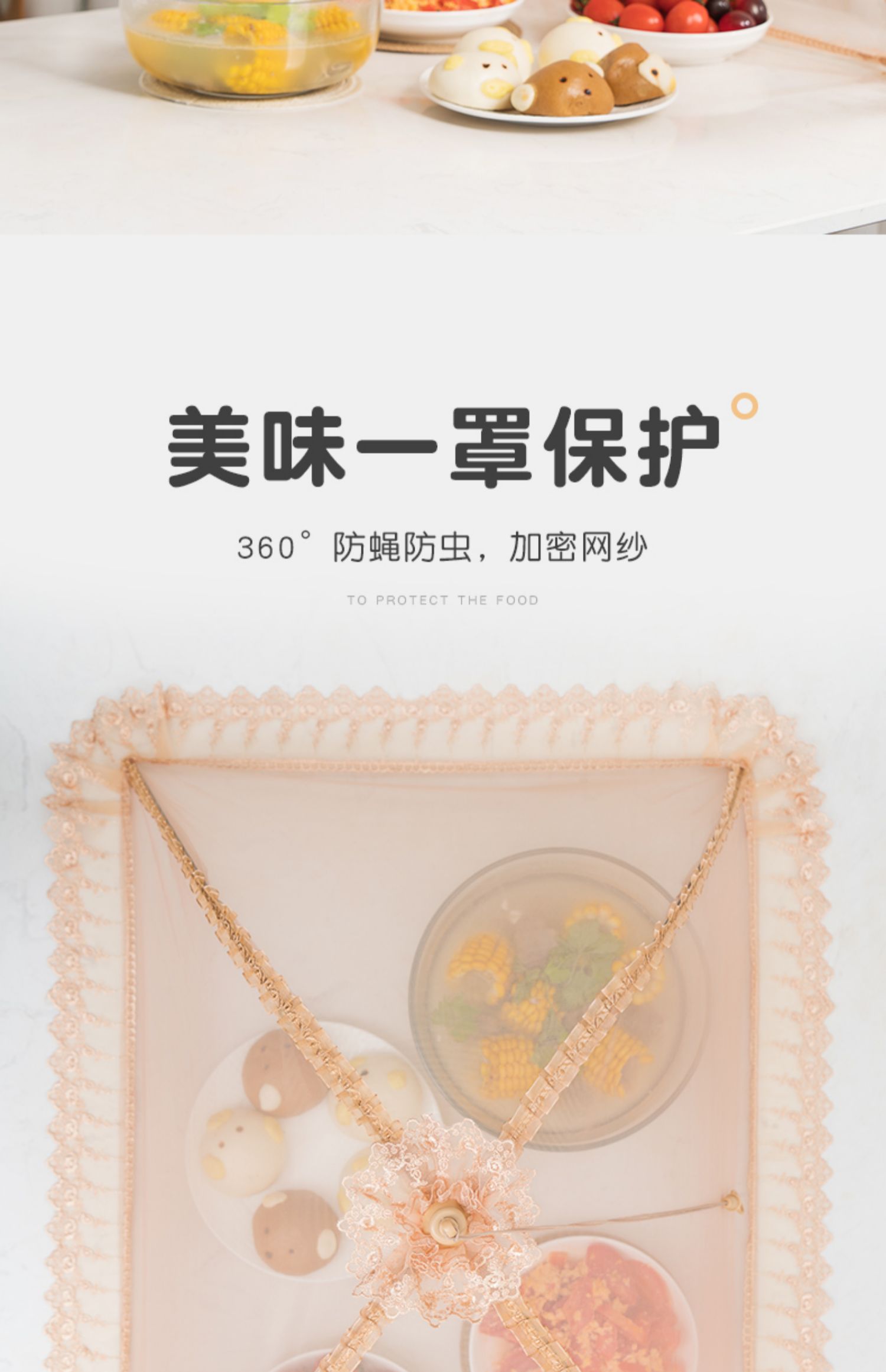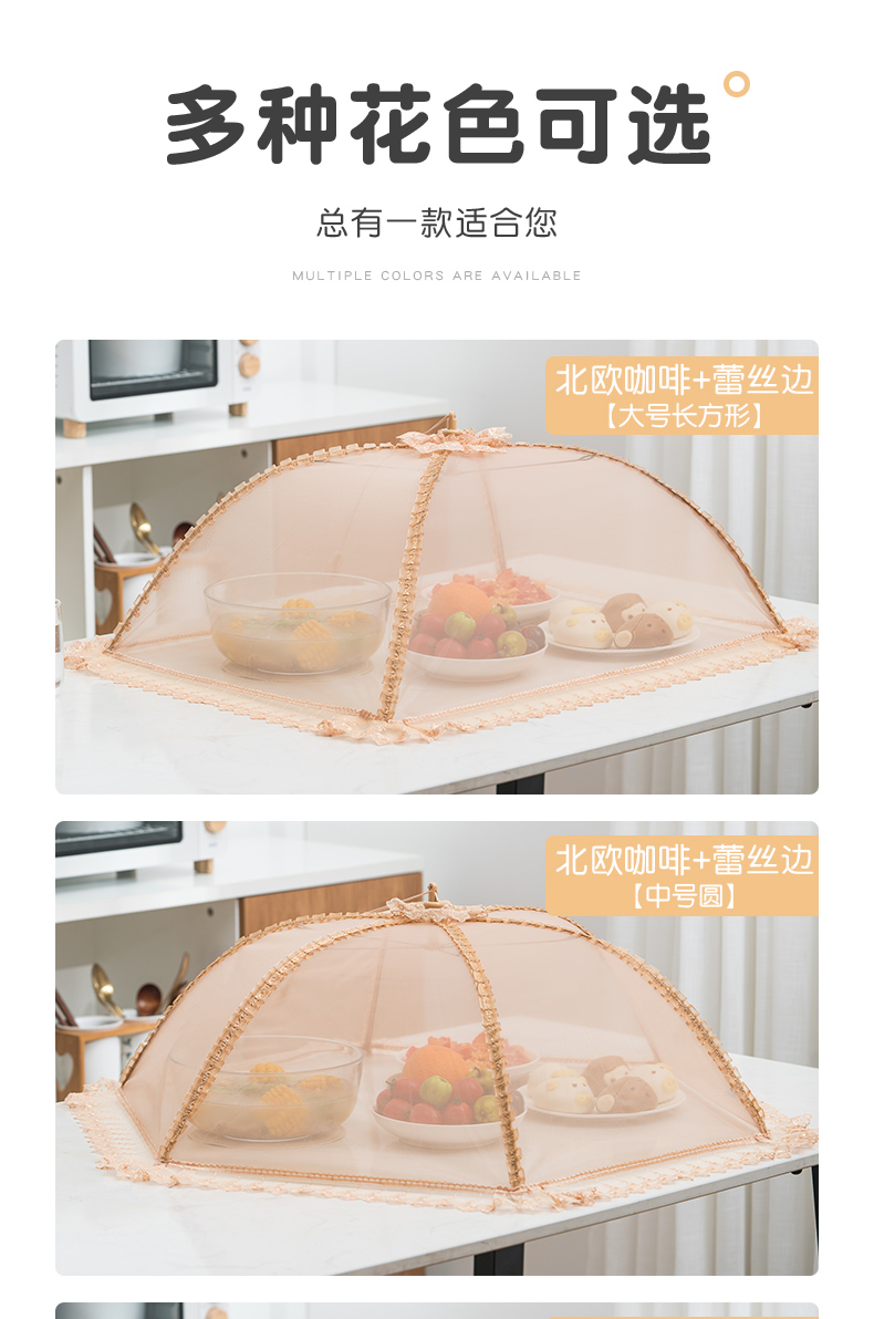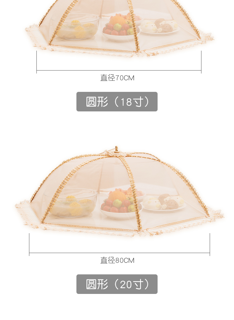 欧式风情,可水洗可折叠菜罩~360°防蚊防虫,加密网纱,伸缩支架,牢固耐用~简约花边,大容量,美观又实用~伸缩拉扣,收纳方便不占地方,你的健康,由它守护!【赠运费险】